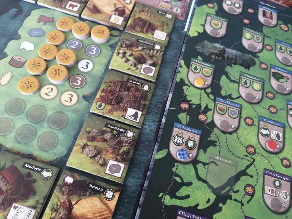 Choisissez la bonne tuile, son placement idéal et activer toutes les tuiles environnantes pour faire le plein de ressources à échanger contre du Whisky ou des points de victoires.