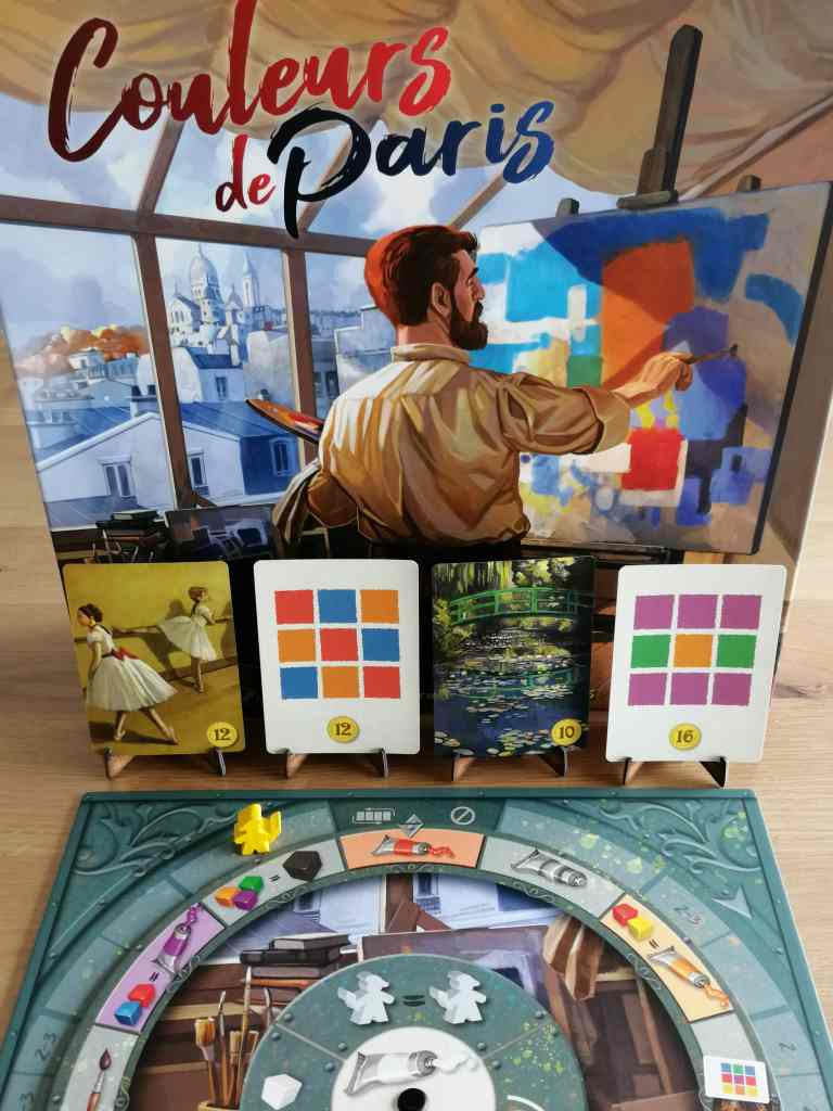 J’aime les couleurs et j’aime Paris… Alors j’aime COULEURS DE PARIS. Mais j’ai d’autres arguments… Derrière des illustrations apaisantes et très élégantes, se cache une véritable course à la peinture dans un jeu de pose d’ouvriers très thématique. La roue d’action fait l’originalité du jeu. COULEURS DE PARIS représente une valeur sûre, un jeu très plaisant, entre opportunisme et anticipation. Il fait à chaque fois l’unanimité autour de moi en combinant parfaitement un jeu stratégique et tactique, dans un tout harmonieux et sans se prendre au sérieux. Un énorme plaisir ludique dans un écrin magnifique. Ingénieux et efficace !