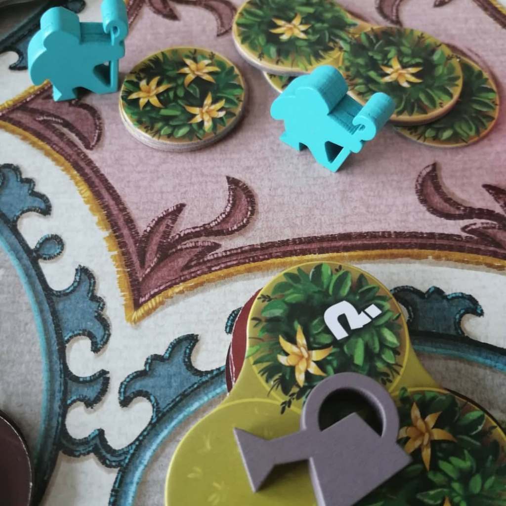 A votre tour, choisissez une tuile et positionnez la sur le plateau commun. Récupérer éventuellement les gemmes se trouvant sous la tuile que vous placez. Puis, posez un de vos jardinier sur cette tuile afin de contrôler un parterre de fleurs ou accomplissez une maîtrise. Enfin, faites pousser des arbres. Le décompte final prend en compte les points de victoires gagnés par vos arbres, le nombres de fleurs que vous posséder, les fontaines que vous contrôlez et les maîtrises effectuées.