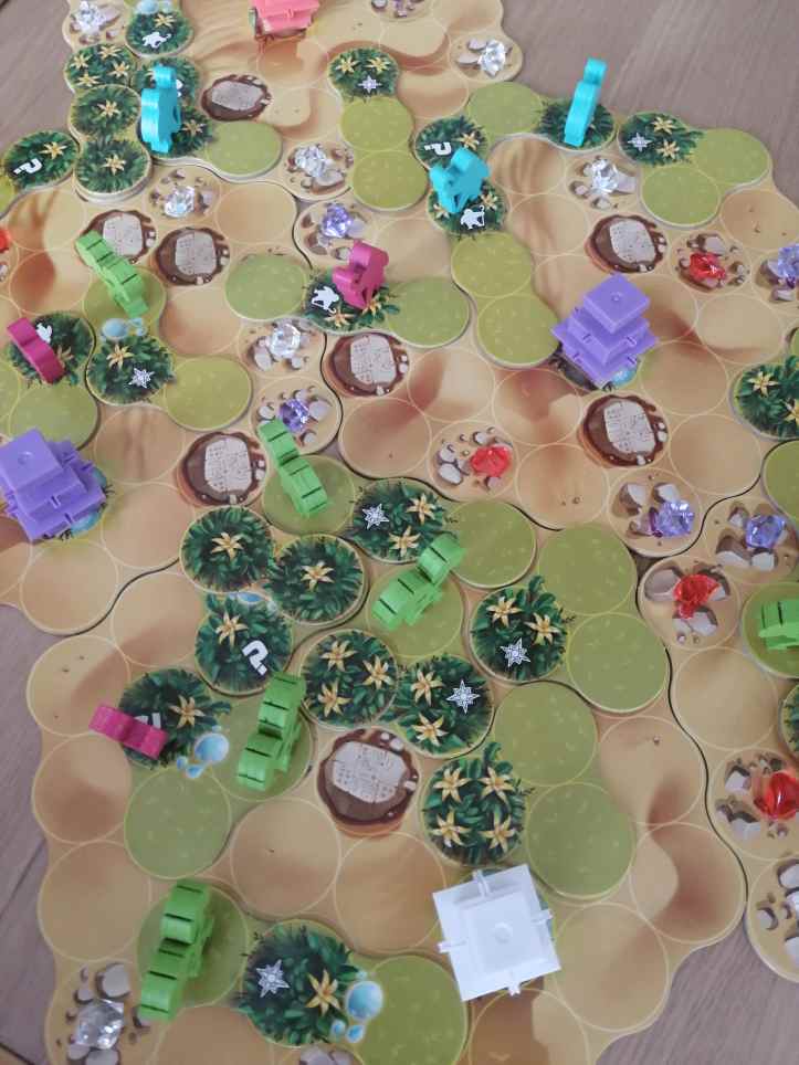 ISHTAR provoque l’envie. Le matériel est irrésistible et même la mise en place quelque peu fastidieuse ne nous coupe pas l’envie de lancer une partie. On est clairement en terrain connu… On se sent en sécurité entouré de mécanismes classiques liés les uns aux autres pour former un tout cohérent et très fluide. La seule insécurité provient des autres, et de ce qu’ils vont bien pouvoir faire pour nous enquiquiner ou nous bloquer. Car de l’interaction, il y en a ! Et les choix pour embêter les autres sont multiples. Mais pas que… Car il va surtout falloir faire preuve d’opportunisme pour prendre la meilleure décision possible à un moment qui ne se représentera sans doute pas. Derrière un déguisement thématique crédible, ISHTAR camoufle un jeu abstrait très moderne, accessible et très agréable, à jouer en famille. Alors oui, rien est bien nouveau mais le jeu est efficace. ISHTAR est « flambant vieux » (Merci Zazie), superbe et expérimenté.
