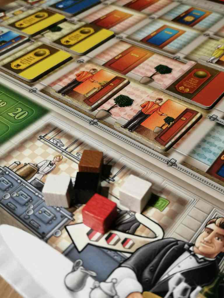 GRAND AUSTRIA HOTEL est un excellent jeu de gestion… pour deux joueurs. C’est le seul gros bémol qui me saute aux yeux. Le jeu est long, très long, trop long à 3 joueurs et interminable à 4 joueurs. On attend tellement entre nos tours de jeu que l’on perd le fil et l’intérêt que le jeu peut avoir. Et il en a de l’intérêt ce GRAND AUSTRIA HOTEL. Déjà le thème peu vu et et qu’on ne perd pas de vue durant la partie. C’est assez rare dans un jeu de gestion aussi exigeant pour être signalé. Les mécanismes de « draft » de cartes en début de partie, de sélection des « dés » actions, des activations de bonus par ci par là donnent un jeu très riche avec de multiples choix à faire au bon moment. Il faut un sacré sens de l’anticipation et un peu de timing aussi. La rejouabilité est immense et l’immersion ludique complète. Je suis une fan inconditionnelle de Simone Luciani et Virginio Gigli et ce n’est pas prêt de changer. Partez en couple à la découverte de Vienne, et vous ne serez pas déçus. Mais attention, le voyage intellectuel ne sera pas de tout repos. Un colosse aux allures naïves.