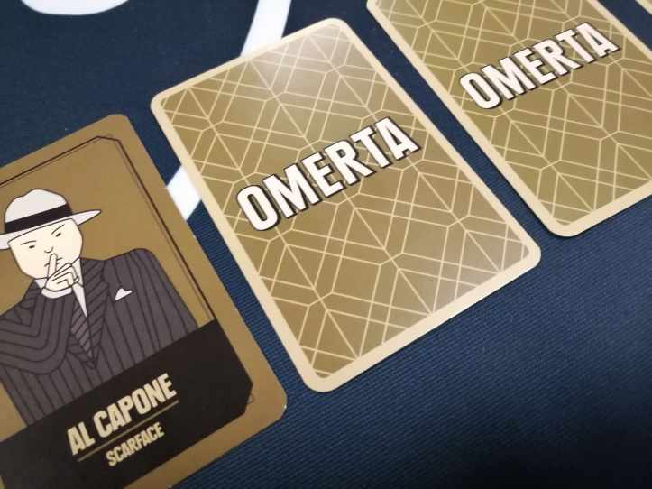 En pleine Prohibition, essayez de vous débarrasser de vos caisses d’alcool le plus vite possible. Piochez une carte et échangez la contre une des vôtres devant vous face cachée. Lorsque vous pensez avoir moins de 8 bouteilles d’alcool, criez « Omerta » et mettez fin à la manche. Attention de ne pas vous tromper, surtout avec la présence de nombreux personnages qui viennent pimenter le jeu et semer la pagaille dans vos prévisions.