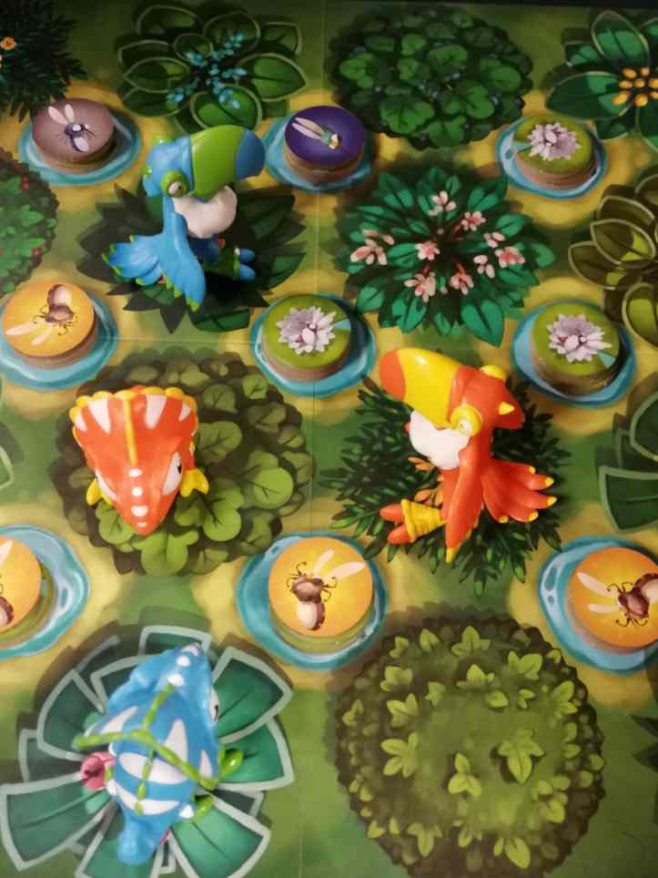 A votre tour, déplacez une de vos figurines selon ses propres contraintes de déplacement et mangez des moustiques qui vous aideront et mèneront à la victoire.