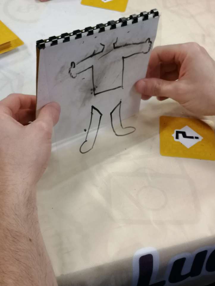 Simultanément, les joueurs découvrent une image et essaient de dessiner au mieux des éléments correspondants à l’image mais non l’image en elle même pour que les autres joueurs devinent ce qu’était réellement l’image.