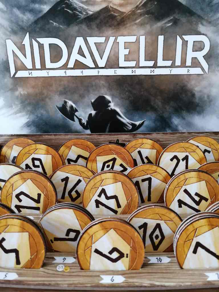 NIDAVELLIR est mon coup de cœur du FIJ 2020. Il présente beaucoup d’originalité malgré un écrin plutôt classique de part son thème et ses mécaniques. Pourtant, chaque élément diffèrent légèrement de ce que l’on connait déjà pour finalement faire un tout rafraichissant. Je m’explique… Le système d’enchères évolue par un « coin-building » très bien fichu, le thème déjà vu et revu est mis en valeur par un parti-pris graphique fort et original, la mécanique de collection de cartes inclus un brin de majorité et une course à l’obtention des héros… Le tout est très cohérent et très plaisant. C’est fluide, accessible et l’application mobile vient même rendre le « scoring », qui aurait pu être très rébarbatif, simple et limpide. NIDAVELLIR réussi même le pari d’être un très bon jeu d’enchères à deux joueurs, fait plutôt rare. Quelles que soient les configurations, c’est du très très bon ! Et mention spéciale, également, pour le titre très peu vendeur… Il fallait oser !