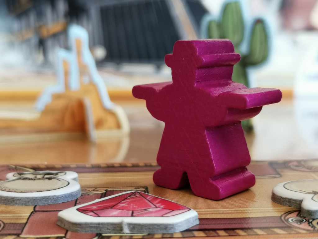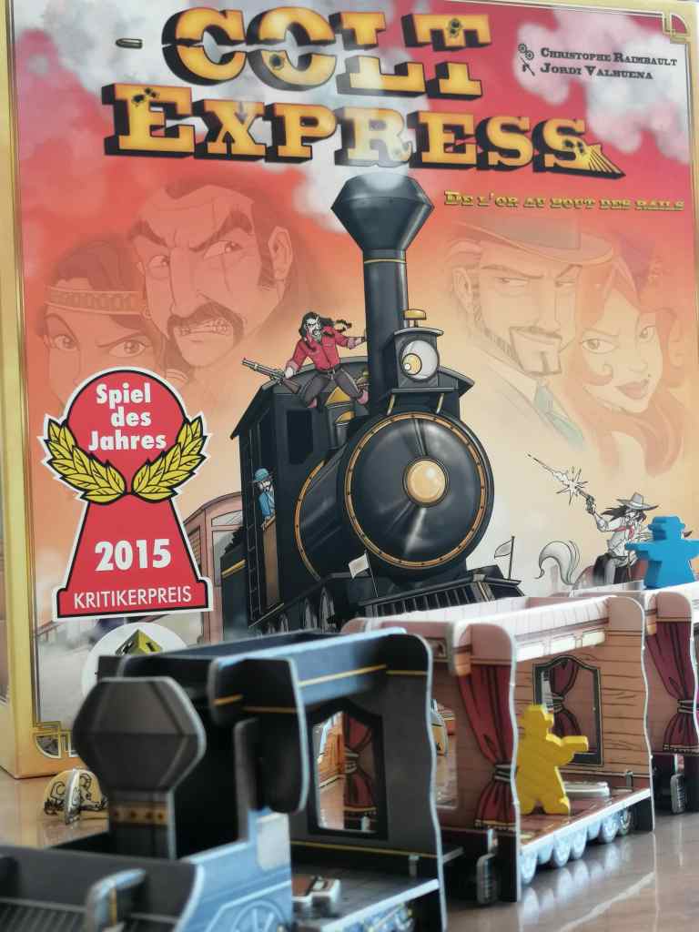 COLT EXPRESS est un des premiers jeux que j’ai acheté au début de mon addiction. Un vrai coup de cœur à l’époque, qui a contribué fortement à me faire tomber dans la marmite. Déjà, je suis très bon public du thème Western, et le train en 3D somptueux aide grandement à tomber amoureuse d’un jeu reconnaissable immédiatement. On y est vraiment, on incarne réellement tous ces bandits à l’assaut du train ! Extrêmement immersif, COLT EXPRESS est immédiat et spontanée. On rentre dans l’histoire très vite et on joue de manière très instinctive. Dans ces petites bagarres, ces règlements de comptes, ces chasses à l’homme ou ces alliances furtives, le jeu est très fun et très surprenant. Alors, ne cherchez pas le contrôle absolu, ni de longues réflexions, COLT EXPRESS est chaotique à souhait et c’est ce qui fait son charme. On prévoit, on programme, on mémorise pour au final jouer dans le vide assez souvent, sentiment drôle et pathétique à la fois ! On peut regretter une rejouabilité limitée pour les acharnés du jeu, mais contre balancé par le fait que le jeu prend vraiment toute sa saveur lorsqu’on est nombreux autour de la table, et donc qui n’est pas de sortie tous les jours. Une madeleine de Proust pour moi, COLT EXPRESS fait du bien, tout simplement.