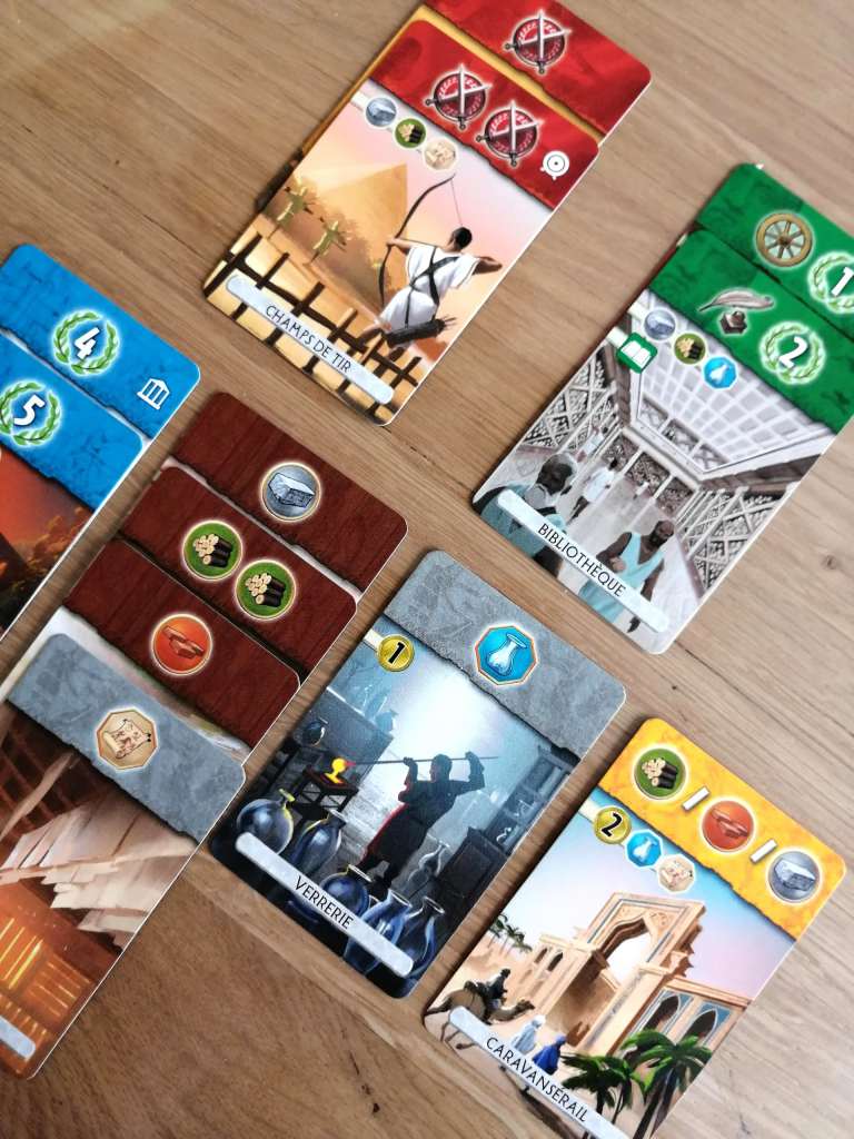 Trois âges symbolisant les trois manches de jeux. Trois pyramides de cartes différentes. Chacun leur tour, les joueurs vont choisir une carte disponible et débloqueront ainsi les cartes placées en dessous et révèleront celles face cachée. Les cartes représentent des bâtiments de sept types différents : les matières premières, les produits manufacturés, les bâtiments civils, les bâtiments scientifiques, les bâtiments commerciaux et les bâtiments militaires. Chaque type de cartes à ses propres caractéristiques. Après le choix de sa carte, le joueur peut l’ajouter à sa civilisation en payant son coût, la défausser contre de l’argent, ou construire une merveille lui apportant différents avantages. Il existe deux façons de remporter la partie de manière anticipée et immédiate : soit par suprématie militaire ou soit par suprématie scientifique. Si jamais une de ces deux conditions n’est pas réalisée, c’est la suprématie civile qui départagera les joueurs en fin de partie.
