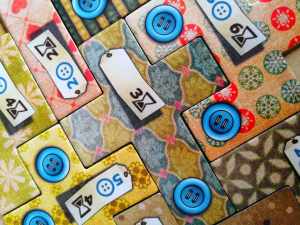 C’est toujours le joueur en dernière position sur le plateau central qui joue. Lorsque tous les joueurs sont arrivés sur la dernière case du plateau central, les joueurs comptent les boutons accumulés et soustraient deux points par case vide de leur patchwork. Le joueur ayant le plus gros score l’emporte.