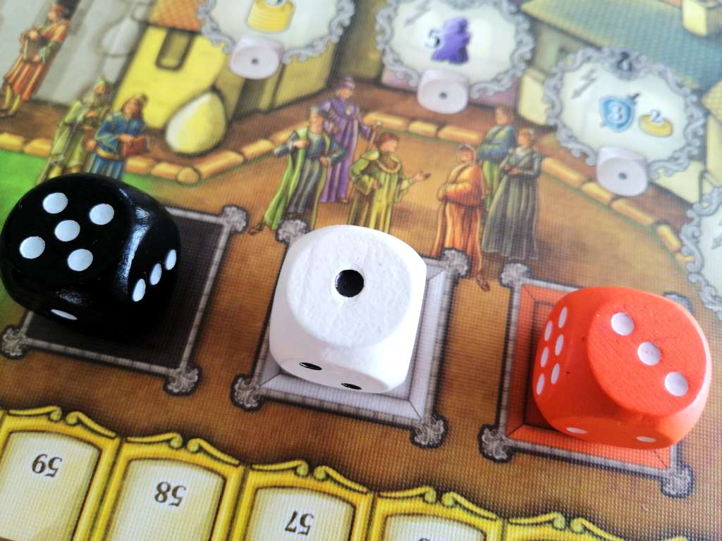 Le jeu se déroule en six manches. Au début de chaque manche, le premier joueur lance les trois dés de couleurs différentes. Chaque joueur possède 3 ouvriers correspondant à la couleur de chaque dé, plus un dé de valeur 0 mais de couleur neutre. Chacun leur tour, les joueurs vont positionner leurs ouvriers sur le plateau central, principalement afin de récupérer des cartes de 4 types différents ou d’activer des cartes déjà en leur possession. La valeur des dés lancés en début de manche indique les cartes potentiellement « achetables » par les joueurs en fonction de la couleur de l’ouvrier qu’ils vont utiliser. Cependant, les joueurs peuvent « user » de leurs assistants pour changer la valeur de leurs ouvriers… Les cartes permettent, soit à leur obtention, soit à leur activation, soit en fin de partie, de récupérer des ressources, de l’argent, de la puissance militaire, des points de victoires en ou encore de la foi. Cette foi est très importante car elle peut contraindre un adversaire à jouer avec un « malus » le reste de la partie si jamais le niveau de foi requis à la fin des manches 2,4 et 6 n’est pas atteint. La partie se termine à la fin de la 6ème manche et le joueur possédant le plus de points de victoire sur les cartes acquises, et les pistes de foi et militaire l’emporte.
