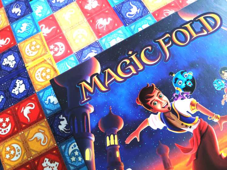 J’attendais la sortie Française de MAGIC FOLD avec beaucoup d’impatience. Il faut dire que j’avais été particulièrement séduite par l’originalité du concept en regardant les premières vidéos TRIC TRAC de présentation du jeu, seulement en Coréen à l’époque. Je ne connaissais pas « Fold It » non plus, qui repose sur le même principe, à savoir le pliage de tapis, ce qui rendait MAGIC FOLD encore plus novateur et surprenant à mes yeux. MAGIC FOLD positionne donc le pliage de tapis au cœur de sa mécanique et thématise ce concept par l’organisation d’une course de tapis volants ! Bien vu ! Les joueurs vont donc devoir être adroits, observateurs et rapides pour voler de nuages en nuages le plus efficacement possible. Des pièges et des raccourcis viennent pimenter la progression des joueurs et l’expérience de jeu par la même occasion. Il va falloir être malin pour réussir son casse tête ou puzzle personnel mais aussi pour choisir au bon moment la carte « objectif » la plus rentable en prenant en compte les aléas du parcours. A certains moment de la partie, il sera par exemple préférable d’avancer peu pour éviter de tomber sur le jeton Cobra, ou d’avancer d’un nombre exact de cases pour bénéficier du raccourci. C’est en ce sens que la Course devient tactique ! Les décisions vont devoir se prendre très souvent dans la précipitation, et parfois par dépit lorsqu’une carte nous passe sous le nez ! Cette urgence et ces frustrations donnent un jeu fun et drôle, d’autant plus que les défis de pliages sont loin d’être évidents, que la pression temporelle renforce la difficulté et que les joueurs ont tendance à se mélanger les pinceaux très fréquemment. MAGIC FOLD conjugue parfaitement son rôle de Party-Game très amusant, son côté course tactique, et ses défis solitaire de dextérité plus technique. Le matériel étant au centre des sensations de jeu, il est important de signaler sa qualité et son agréabilité. Même si l’illustration de la boite laisse penser à un jeu très enfantin, MAGIC FOLD s’avère plus compliqué qu’il en a l’air et vous fera certainement « tourner en bourrique » plus d’une fois. Un très bon jeu familial, singulier et immersif, dans lequel nos sens ne n’ennuient pas une seconde !