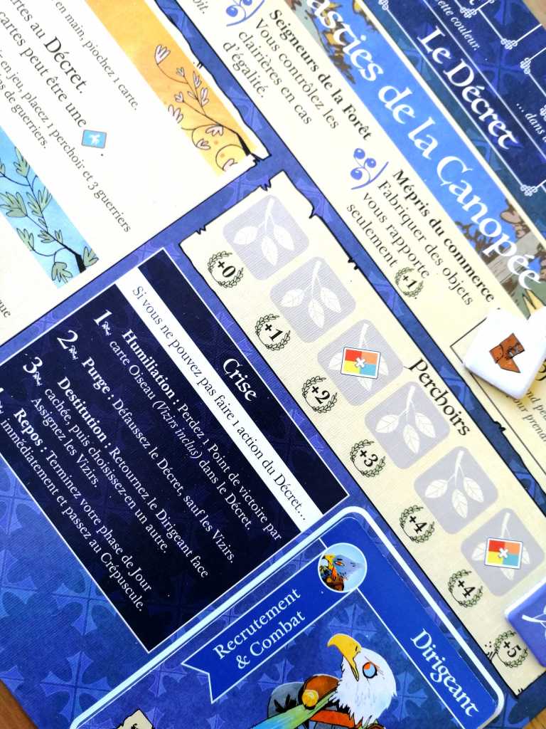 ROOT est restée très longtemps dans ma « pile de la honte ». En fait, il m’effrayait… Lire et retenir six règles du jeu et les expliquer par la suite, trouver minimum 4 joueurs motivés, plutôt « experts », et les rassembler de manière régulière, me semblait un pari impossible. Un an s’est écoulé et les conditions se sont peu à peu réunies pour que ROOT se dévoile progressivement, avec beaucoup de plaisir et finalement le regret de pas avoir franchi le pas plus tôt. Si ROOT est aussi difficile à appréhender, en réalité, il est beaucoup plus facile à prendre en main qu’il n’y parait. Les règles communes sont simples et explicables en quelques minutes. C’est dans l’asymétrie des factions incarnées par chaque joueur que ROOT trouve toute sa complexité, mais aussi sa richesse et ses nombreuses possibilités tactiques, tout en restant relativement abordable. Chaque faction offre des sensations uniques de jeu en ayant un objectif distinct, orientant les options tactiques de chaque joueur. Les actions font toujours sens avec le caractère de chaque faction et rappellent à tout moment la thématique. Tout est très bien incarné et intégré. Alors évidemment, il y a des factions plus amusantes, plus tendues, ou plus agressives à jouer que d’autres… Mais ces fortes disparités forment un tout très cohérent et plutôt équilibré malgré tout. Même si ROOT demande de contrôler des territoires, gérer sa main de cartes, surveiller de près vos adversaires ou encore provoquer des conflits et créer des alliances, vous ne maitriserez pas tout. Il y a une part de hasard non négligeable qui peut agacer autant qu’elle peut alimenter le côté « fun » et pimenter un peu les parties. Enfin et avant tout, ROOT est une course aux points de victoire dans laquelle chaque joueur doit véritablement suivre le chemin de sa faction et de ses actions induites de manière la plus opportuniste possible. On fait, on défait, on avance, on recule, on construit et on détruit pour grappiller quelques points… Un jeu de chats et de souris dans une forêt peuplée d’animaux, logique ! ROOT est une drôle de « bestiole » étonnante et charmante, une expérience singulière, harmonieuse et savoureuse, un coup de cœur original et indispensable.