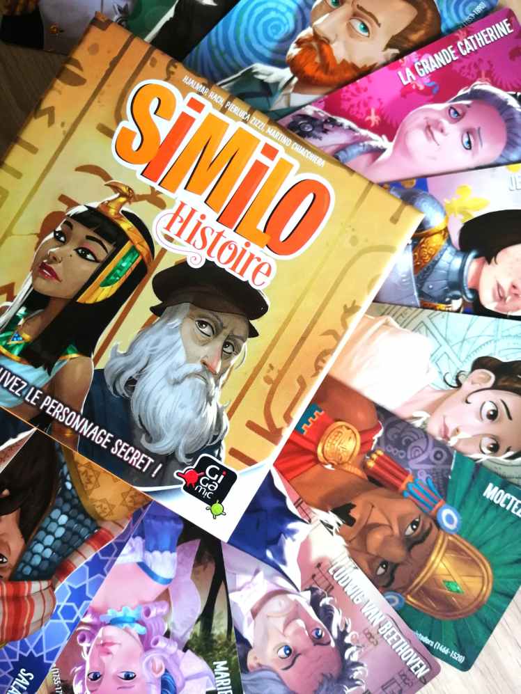 Ces sont vraiment les illustrations des cartes de Naïade qui m’ont en premier lieu attirées vers SIMILO. Un travail subtil, superbe, oscillant quelque part entre le réel et la caricature, vous plongeant instantanément dans le jeu et vous donnant envie d’ausculter chaque personnage dans le détail. Le seul regret vient du fait de ne pas pouvoir profiter au maximum de certaines cartes, qui seront retournées trop rapidement ! Mais le jeu ne s’arrête pas à son esthétisme… SIMILO propose une mécanique très épurée de déduction coopérative. Tout est très fluide, dynamique et présente l’avantage de se jouer en quelques minutes, pratiquement partout et avec tout le monde. C’est déjà pas mal, me direz vous ! Mais ce n’est pas tout, car ce qui m’a le plus séduite, ce sont ces moments de discussions, de suppositions, de tentatives de déduction aboutissant souvent à des raisonnements plus ou moins fantaisistes, quelque fois absurdes et souvent complètement « à côté de la plaque ». De la légèreté dans la simplicité des règles et de la mécanique, mais des décisions pouvant parfois prendre un caractère grave avec une tension dans l’annonce des résultats. J’aime ce jeu dans le jeu ! Les notions culturelles sur chaque carte personnage sont indispensables et permettent d’accroitre encore l’accessibilité tout en apportant une petite touche pédagogique. L’idée de pouvoir mélanger les cartes provenant des trois boîtes existantes (Histoire, Contes et Mythes) est excellente, rajoute du « fun » et relance la difficulté qui peut parfois, entre adultes, venir à manquer. Une très belle surprise pour moi, pourtant peu convaincue et passionnée par les jeux coopératifs en général. SIMILO m’a séduite par la beauté de son matériel, la pureté de sa mécanique et l’originalité des discussions qu’il provoque. Un jeu léger, rapide et efficace.