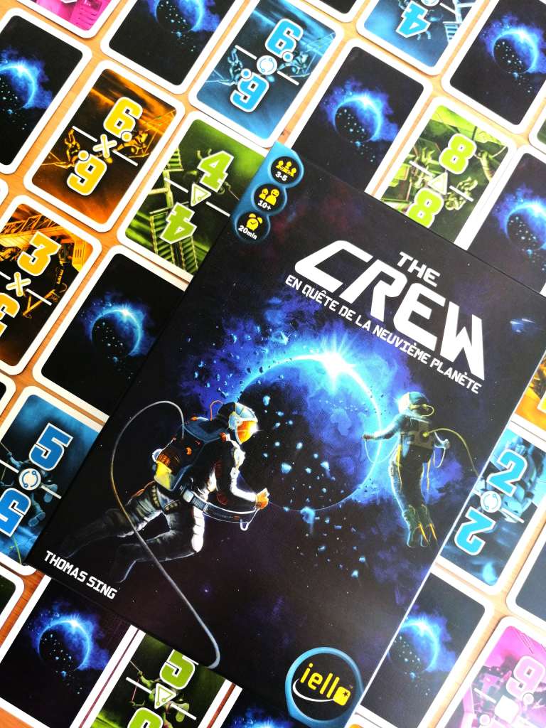 Mon penchant pour les jeux coopératifs est proche du néant… La couleur est annoncée. Ils me font souvent autant d’effet que de voir la Tour Eiffel pour les Parisiens… Mais THE CREW – EN QUÊTE DE LA NEUVIÈME PLANÈTE, m’a intrigué… Déjà parce que je me suis découverte une passion pour les jeux de plis très récemment, avec notamment HAGAKURE qui m’a séduite instantanément, ensuite parce que j’aime l’univers sur lequel repose le jeu et enfin parce que l’idée même que l’objectif final ne soit pas de remporter les différents plis m’attirait beaucoup. Je n’avais pas vu beaucoup d’images ni lu beaucoup d’articles à son sujet, hormis sa nomination pour le « Kennerspiel des Jahres », qui m’avait alerté, mais j’aime de plus en plus découvrir les jeux sans a priori, presque « vierge » de toutes informations. J’ai donc découvert THE CREW et l’expérience qu’il met en scène. Immédiatement, un air de renouveau apparait autour de la table reposant sur une mécanique pourtant très connue. Tous les ingrédients d’un jeu de plis traditionnels sont présents. Les règles sont simples, les cartes sont claires et les objectifs sont déroutants. On se perd un peu dans l’espace des premières missions, en essayant de penser à l’envers une mécanique que l’on applique en temps normal de manière presque routinière. Et puis, les parties s’enchainent, la difficulté grandit et les progrès se font sentir. THE CREW possède une grande courbe d’apprentissage tactique mais aussi dans la manière de communiquer sans réelle communication. Chaque joueur essaie de comprendre les autres et de déterminer le but vers lequel tendent les actions de chacun. Ces mêmes actions qui vont, après chaque carte posée, déclencher des réactions et après chaque fin de parties, des discussions… Un jeu étonnant qui détonne comme un grand coup de tonnerre dans le ciel ludique. Même si l’immersion est plus mécanique que dans le récit des différentes missions, l’effort de contextualisation est très appréciable. Un grand jeu dans une toute petite boîte, accessible au plus grand nombre même si THE CREW tend à devenir de plus en plus subtil et tendu au fur et à mesure de notre progression. Un jeu coopératif indispensable aux sensations différentes, déroutantes et envoutantes.