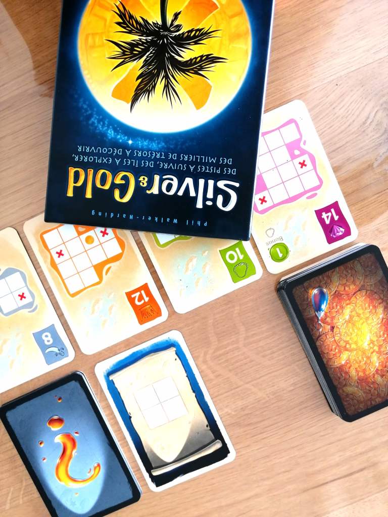 Encore un « Flip & Right »… La mode commence à vraiment durer dans le temps. J’ai pas besoin de refaire à chaque fois le « topo ». Je ne suis pas la plus fidèle adepte de ce genre de jeu. J’ai toujours l’impression de jouer seule dans mon coin. Et pourtant SILVER & GOLD m’a beaucoup plu. Ce n’est ni son esthétisme rudimentaire, ni sa thématique anecdotique qui m’ont séduite mais plutôt son minimalisme, sa simplicité et son efficacité. Très familial, « la sauce » prend très vite et le jeu en apparence tranquille se transforme en Course aux cartes objectifs et aux pièces d’or. Les choix tactiques restent basiques mais non sans intérêt et les tours s’enchainent de manière fluide et nerveuse. SILVER & GOLD ne révolutionne pas le genre, ni les jeux de société en général, mais il représente une alternative fédératrice autour de sa mécanique sans prétention. Il se différencie des autres par son extrême pureté, son matériel ingénieux et ses modestes interactions. Son autre avantage, et non des moindres, se situe dans son format facilement transportable, comme la plupart des « jeux à cocher ». SILVER & GOLD est une belle surprise et représente une alternative plaisante à des jeux du même style plus « costauds ». Un jeu très facilement « sortable », avec tout le monde et à peu près partout. Si comme moi en ce moment, vous recherchez des jeux légers mais malins, rapides mais intéressants, alors SILVER & GOLD est fait pour vous.