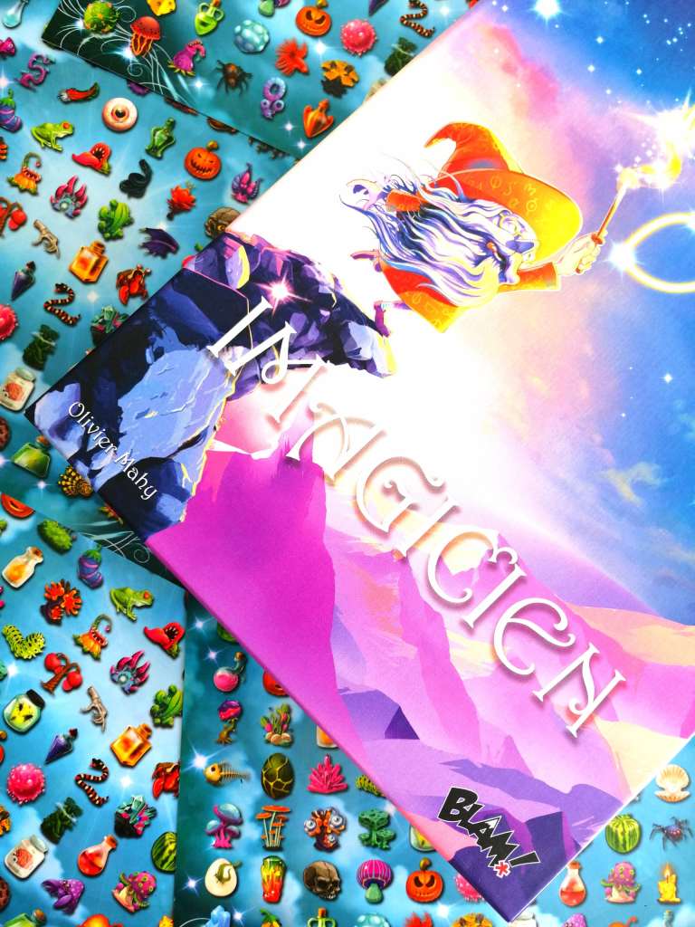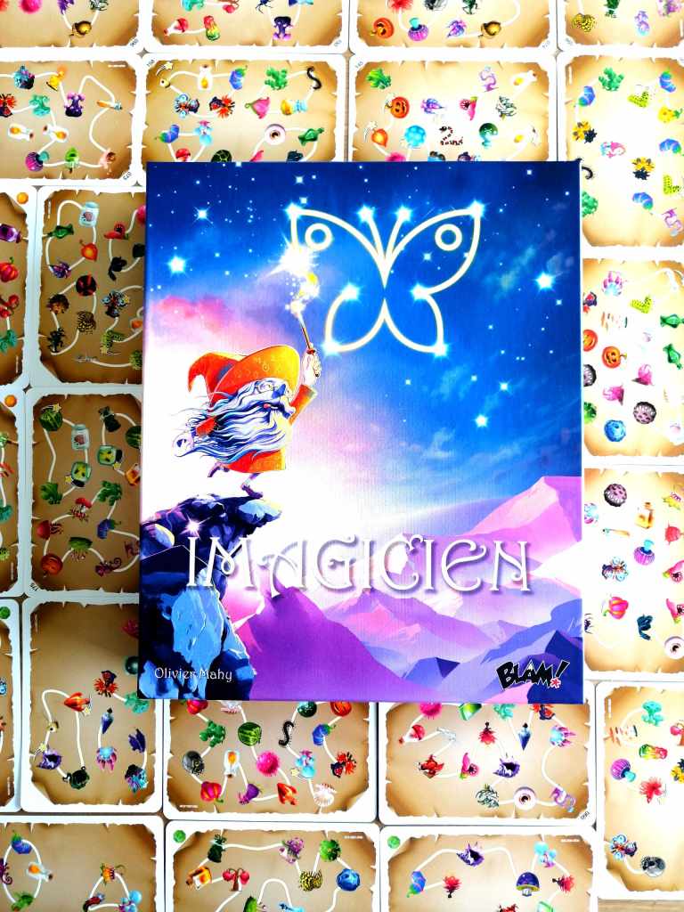 IMAGICIEN repose entièrement sur l’idée connue et nostalgique de relier des chiffres pour obtenir au final un objet ou un personnage. Rien de bien nouveau donc… Les chiffres sont remplacés par des images représentant des objets issus du monde de la magie… D’où IMAGICIEN ! Pas mal… mais encore ? Et bien c’est presque tout… Les joueurs vont s’affronter dans une course aux dessins, ou plutôt dans une course de liaisons pour deviner avant les autres l’objet découlant de ces coups de crayons magiques. Et le résultat est… Magique. On se surprend à adorer revenir en enfance, à s’agacer devant les pictogrammes introuvables et à mélanger le sens de notre dessin… Et même une fois terminée, la précipitation ne rend pas pour autant la solution évidente. C’est très drôle et terriblement efficace… Les manches s’enchainent dans une ambiance agréable, fun et concentrée à la fois. Tout le monde s’investit immédiatement et le plaisir vient en grande partie de cette immersion. Nouveau sans être novateur, IMAGICIEN est une très belle surprise et propose un divertissement réjouissant et singulier. Sa grande accessibilité et son immédiateté en feront très certainement un « Hit » fonctionnant aussi bien entre enfants, amis ou en famille. De l’observation, de la concentration, de la rapidité, du dessin, du rire, de la déduction… IMAGICIEN est tout ça à la fois.