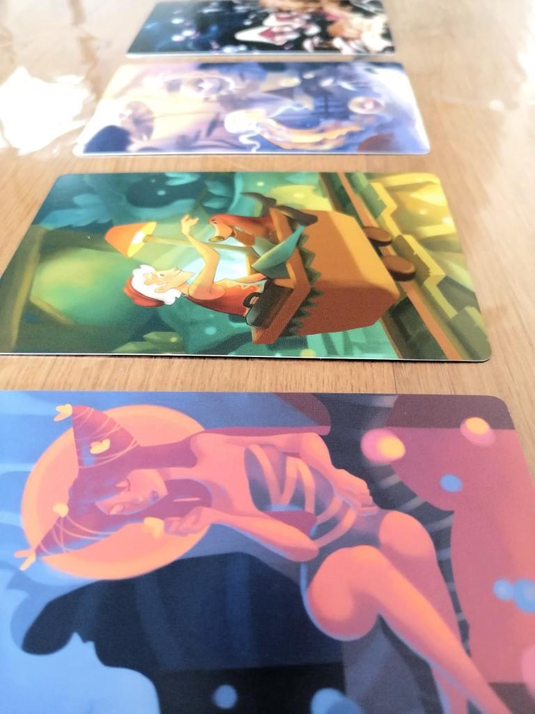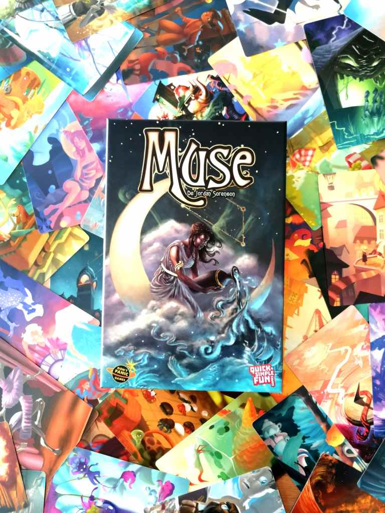 Depuis sa sortie en français il y a quelques jours, MUSE est présenté comme un « DIXIT » par équipe et sous contraintes. Mes premières impressions vont effectivement confirmer cette présentation. Derrière une thématique assez anecdotique et des illustrations superbes, se cache un jeu de déduction par équipe prenant appui sur le sens qui peut subjectivement se détacher de certaines illustrations. L’idée n’est pas originale mais fonctionne efficacement. Les discussions « tordues » autour de la table pour essayer de deviner la « logique » de la Muse sont toujours de bons moments. La singularité de MUSE s’inscrit par la contrainte qu’il va falloir imposer à l’équipe adverse et donc dans la recherche de l’association « Carte-Consigne » la plus éloignée possible. Ainsi, il apparaît des discussions dans les deux camps mais pas pour les mêmes objectifs ! Très facile d’accès et immédiatement compréhensible, les joueurs saisissent les enjeux spontanément. MUSE propose donc, dans un format très familial, une expérience entre déductions et « filouteries » mise en valeur par des cartes somptueuses. Mon point de vue personnel sera tronqué dans la mesure où je suis ni trop « Jeux Coopératifs », ni du tout « DIXIT », mais MUSE représente une alternative collective « Chafouine » à son jeu de comparaison même si les « consignes » le rendent également moins libertaire. Un jeu d’ambiance très interactif, léger et sympathique.