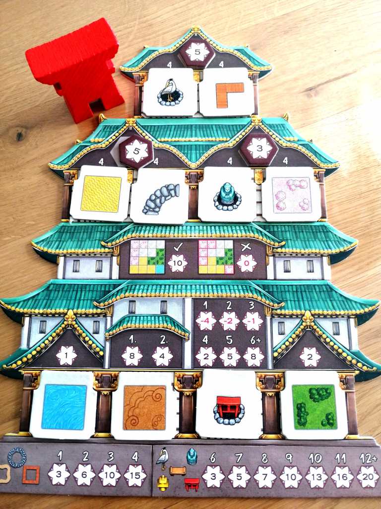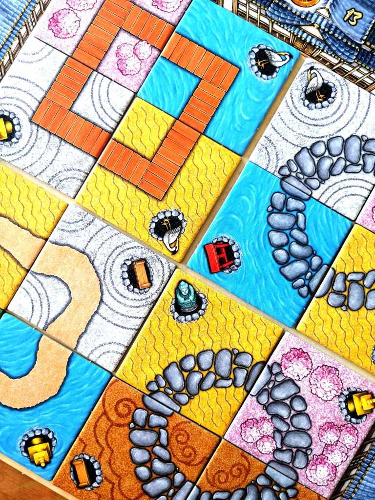 ZEN GARDEN peut être considérer comme une porte d’entrée vers les jeux de « Tuiles » modernes. La mécanique se concentre sur l’essentiel, à savoir le choix d’une tuile et son positionnement sur son plateau personnel afin de marquer des points de victoire en répondant à divers objectifs définis en début de partie. D’une grande efficacité, le jeu propose des règles simples et une lisibilité des tuiles et objectifs évidente. En ce sens, ZEN GARDEN s’adresse à un public très familial souhaitant découvrir ce style de jeu en douceur et dans une atmosphère sobre et calme. Le thème japonisant n’est que prétexte à l’élaboration mécanique de son jardin de « tuiles » mais se révèle un peu plus dans ce temple « d’objectifs » proposant des niveaux de difficulté croissants. D’ailleurs la richesse du jeu et sa bonne rejouabilité provient de cette association d’objectifs combinables et aux tuiles variables qui la compose. Les choix tactiques des joueurs sont modestes mais doivent prendre en compte les divers objectifs de « scoring » tout en essayant de jeter un œil sur ce qui pourrait intéresser les autres joueurs. Il ne sera pas possible de jouer sur « tous les tableaux » et les interactions dans le choix des tuiles sont plaisantes. ZEN GARDEN se veut très accessible et ravira les joueurs occasionnels ou souhaitant partager de bons moments familiaux autour de choix simples mais opportuns et de parties rapides.