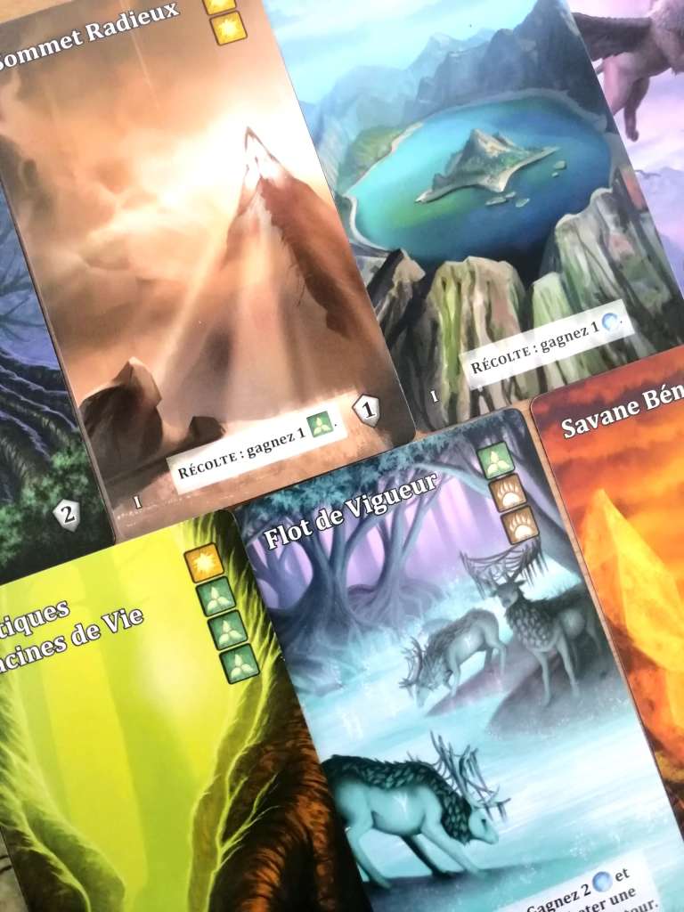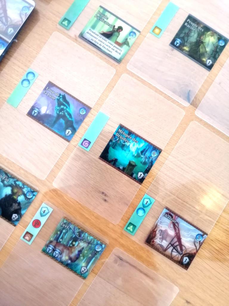 A son tour de jeu, chaque joueur ajoute à son « champ » (d’actions), et une par une, des cartes de son »deck ». Il peut s’arrêter à tout moment. Si 4 symboles « Déclin » se trouvent sur les cartes visibles alors le joueur est contraint de passer son tour. Sinon, il peut utiliser les capacités des cartes pour acheter des « Évolutions », en utilisant les symboles « Mana ». Ces « Évolutions » se présentent sous la forme de « transparents » à glisser dans les protèges des cartes initiales, améliorant ainsi les capacités générales de la carte. Ces améliorations contiennent des symboles « Mana », « Points de victoire », ou « Esprit », et ce sont ces « esprits » qui permettent au joueur d’acheter des cartes « Val », synonymes de points de victoire ou de pouvoirs permanents.