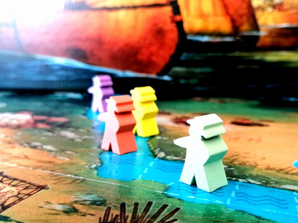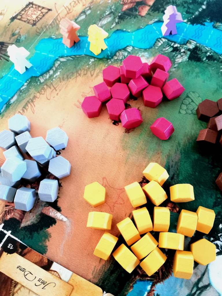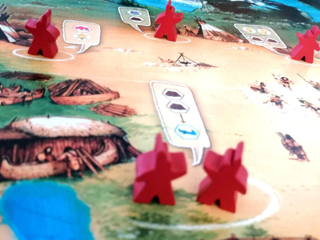 – Réaliser une des actions du plateau de jeu en déposant des indiens sur celles-ci. Elles consistent à récupérer des ressources, en échanger contre des moyens de déplacements, améliorer son expédition, se défaire de certaines cartes de sa main ou encore copier l’action d’un personnage en jeu.