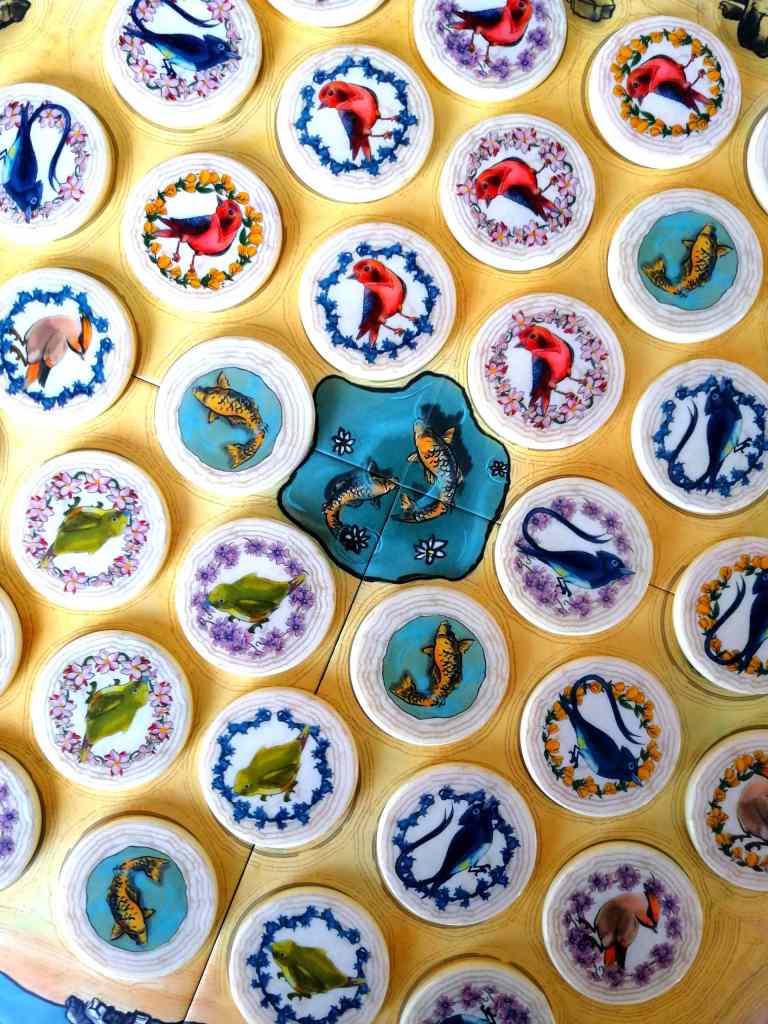 A votre tour de jeu, choisissez parmi l’une de vos deux tuiles en main et positionnez la sur une case vide du plateau de jeu, adjacente à une autre tuile. Une tuile est composé d’un oiseau et d’une couronne de fleurs. Marquez immédiatement des points de victoire pour toutes les tuiles adjacentes à la tuile posée représentant le même oiseau.