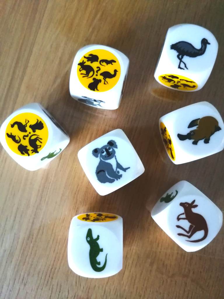A son tour de jeu, le joueur a droit jusqu’à trois lancers de dés « animaux ». Selon le résultat obtenu, il récupère les animaux correspondants sur la Jeep et les place sur son plateau personnel, sur la ligne correspondant au nombre de dés obtenus pour l’animal en question. Chaque animal introduit rapporte un point de victoire plus un point de victoire pour chaque animal de la même espèce formant un groupe adjacent. Mais les points sont specifiques à chaque animal. Ainsi , il y a cinq marqueurs de score, un pour chaque espèce.