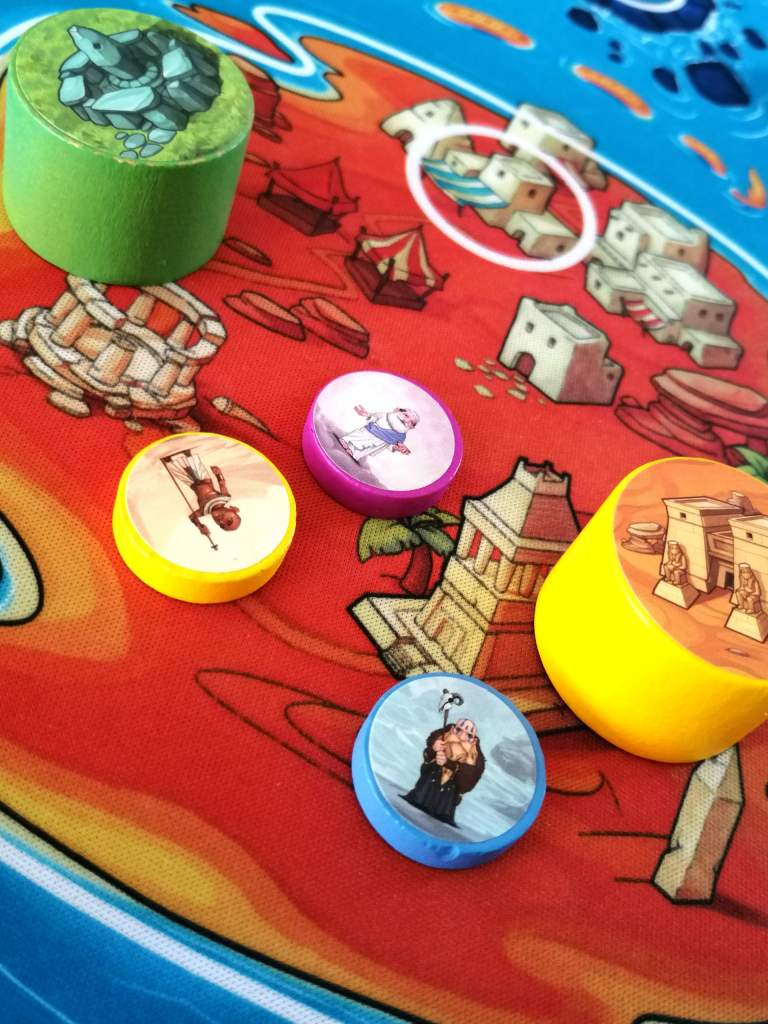 – La phase de mission : les joueurs vont envoyés à tour de rôle leurs prophètes un par un sur les îles par une « pichenette ». Si un prophète envoyé touche une Cité, le joueur actif peut construire un temple sur cette île. A la fin de cette phase, si des prophètes se trouvent sur la Région Centrale, alors ils sont défaussés mais font marquer des points de victoire à leurs propriétaires.