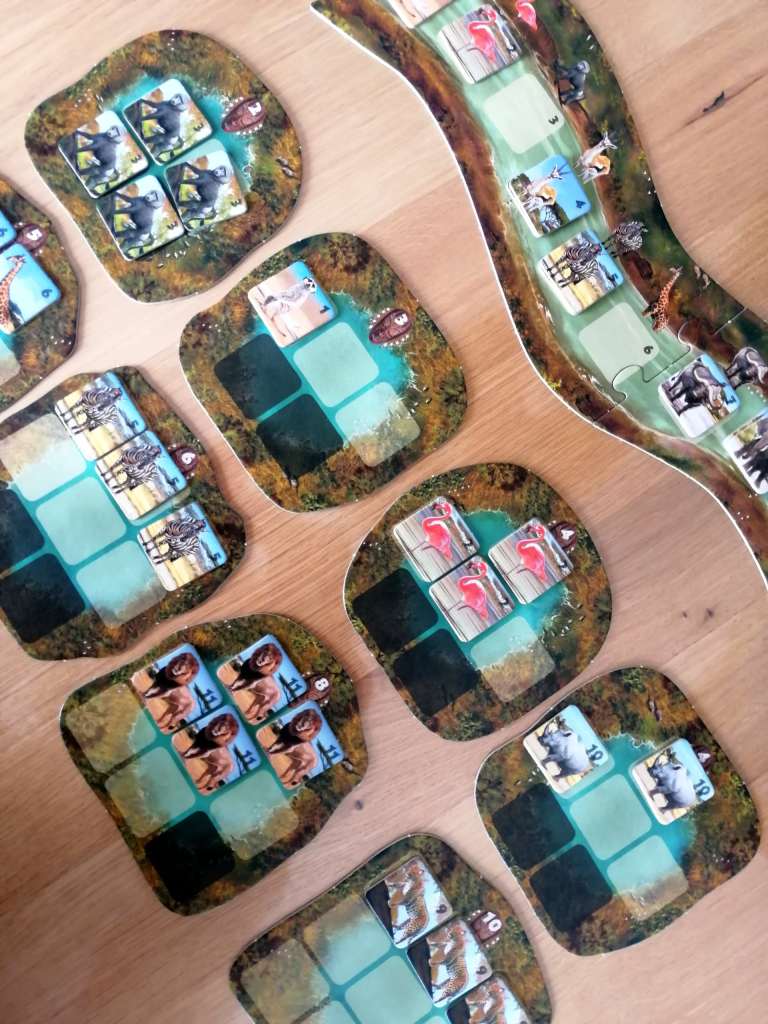 A votre tour de jeu, récupérez tous les animaux d’un trou d’eau ou d’un bras du Delta de votre choix. Puis, remplissez cette tuile vide par un nouveau troupeau. Tous les animaux doivent être semblables dans un trou d’eau et différents dans un bras du Delta. Le nouveau troupeau doit comporter plus d’animaux que l’ancien ou autant mais d’un rang supérieur. Des points de victoire sont remportés si la tuile (trou d’eau ou bras du delta) est complète. Enfin, récupérez des animaux du fleuve de l’Okavango selon le nombre d’animaux conduit vers un trou d’eau ou un des bras du Delta.
