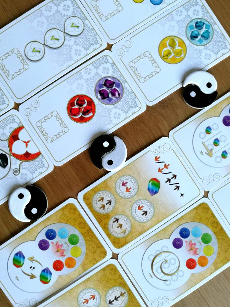 – Module « Yin Yang » : Des énergies blanches sont ajoutées dans le sac « Univers ». Elles permettent d’harmoniser temporairement les chakras en remplaçant une autre énergie afin que ce Chakra puisse être « sauté » lors des déplacements. Lorsqu’une énergie blanche et une énergie noire se retrouve dans un même Chakra, le joueur défausse ces énergies et reçoit une moitié de symbole « Yin-Yang », pourvoyeuse de points de victoire.