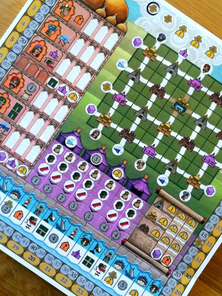 – Vert – Construire des routes. Les joueurs étendent le réseau routier de leur Province. Ainsi, ils construiront des bâtiments, pourvoyeurs de points de gloire et ouvriront des marchés, permettant la vente de marchandises.