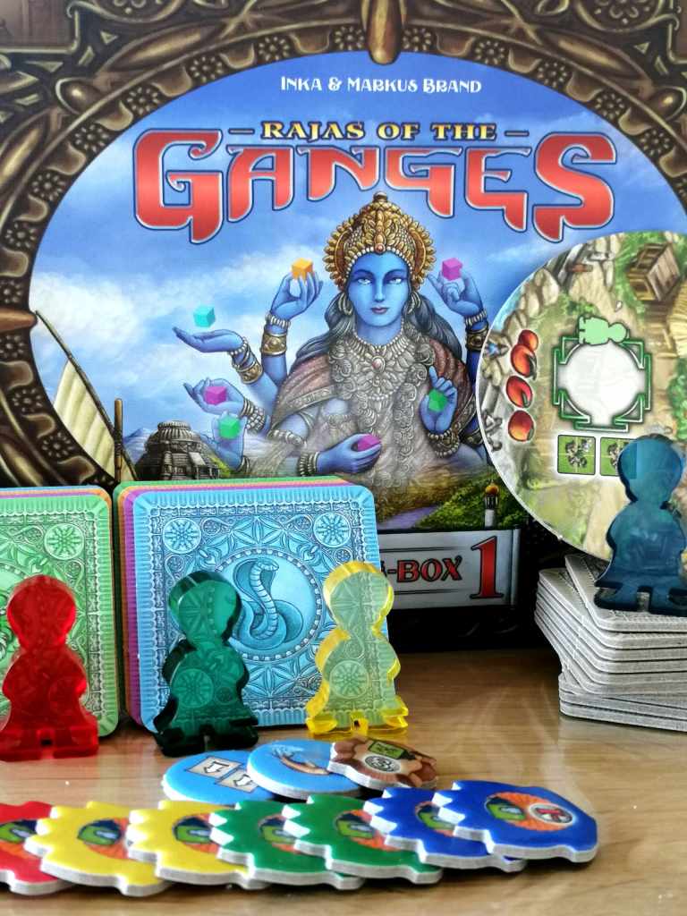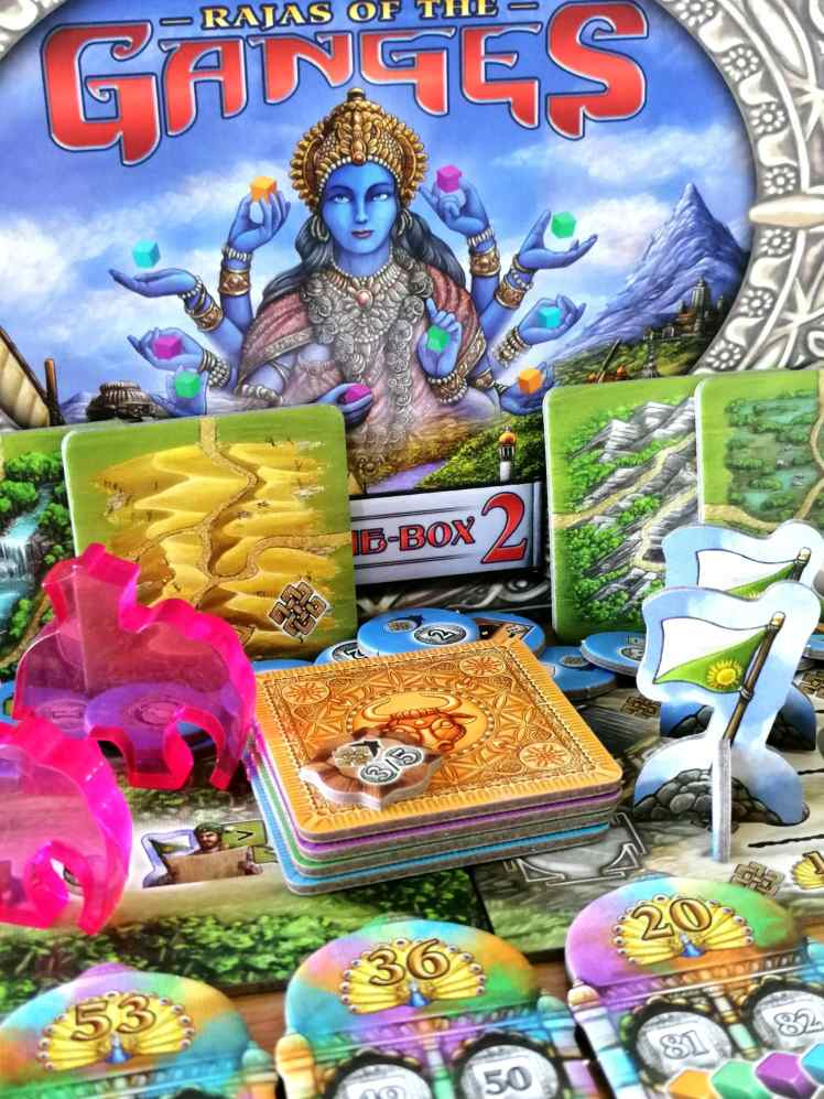 – Gange Module 3. De nombreuses nouvelles tuiles fleuves peuvent être intégrées au module « Gange » du jeu de base pour varier les gains obtenus.