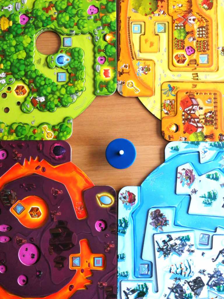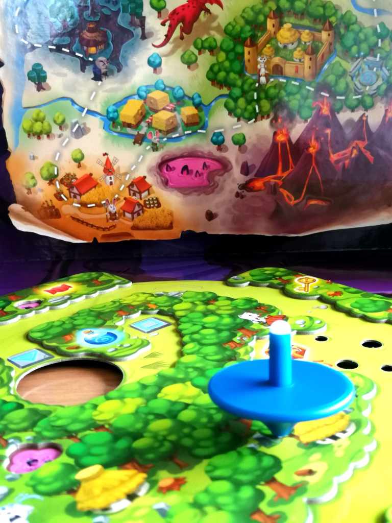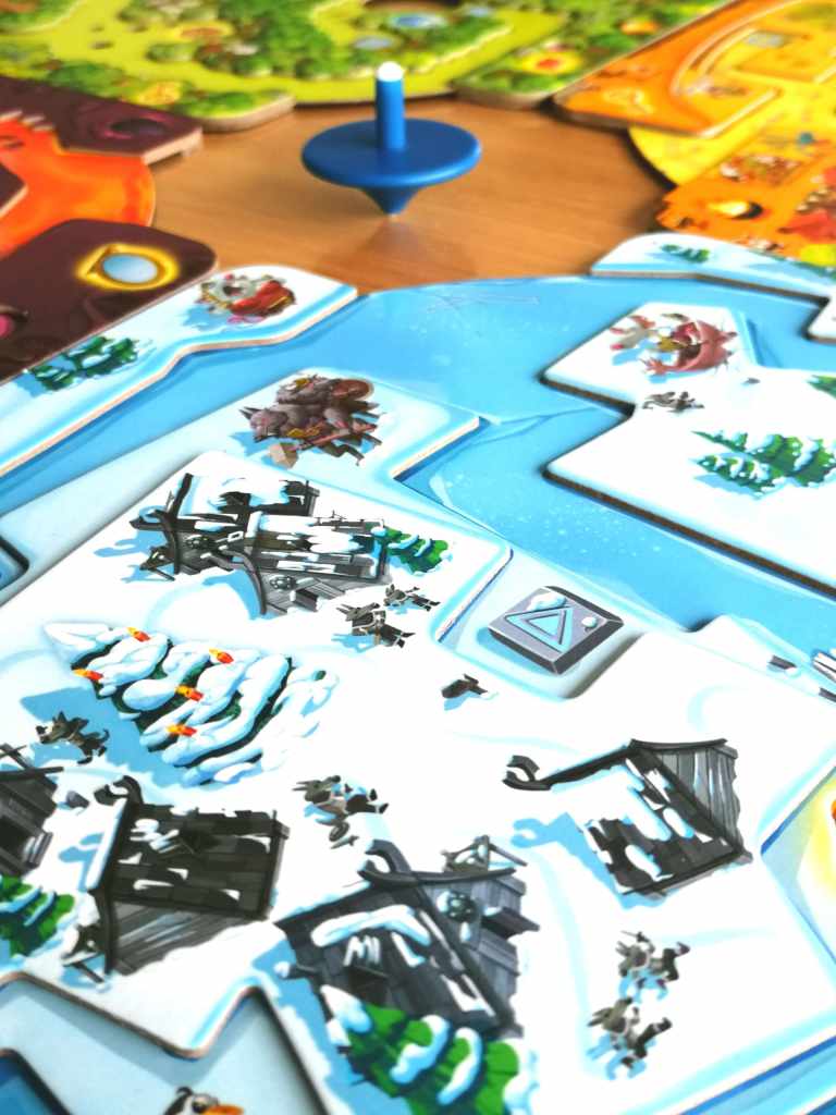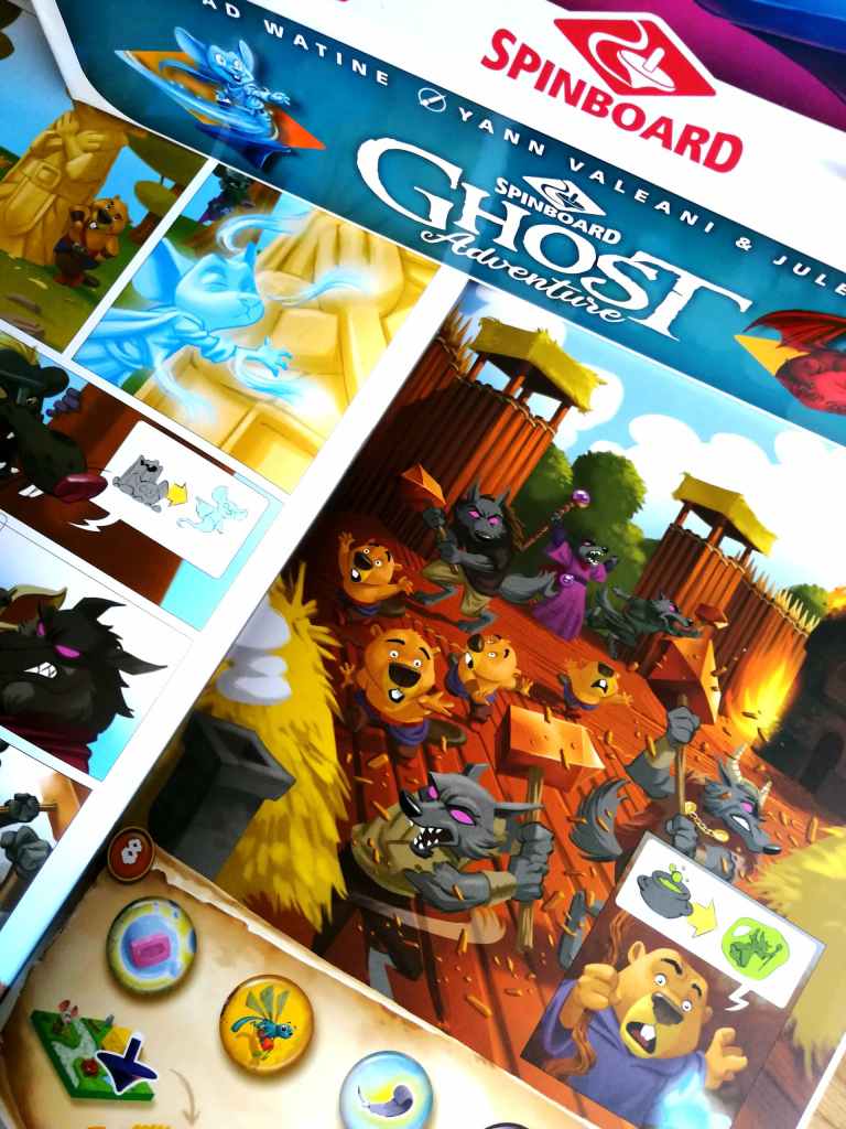 J’avais déjà été très intriguée lorsque j’avais découvert rapidement GHOST ADVENTURE au Festival des Jeux de Cannes 2019. Je ne m’étais pas attardée plus que ça, pensant avoir affaire à un jeu très « enfantin » et finalement de toupies. Une toupie, oui, sans aucun doute, qui danse sur des parcours plus ou moins malicieux essayant d’atteindre des cibles plus ou moins évidentes. « Enfantin », c’est un peu moins flagrant. GHOST ADEVNTURE s’adresse effectivement à des enfants, par la mécanique qu’il propose, la thématique qu’il met en scène et les illustrations d’un monde plutôt imaginaire qu’il suppose. Mais l’adresse qu’il demande est redoutable et c’est en ce sens que les adultes s’y amusent également beaucoup, en se prenant au jeu et en « piquant » relativement souvent les plateaux de jeu en douce à leurs enfants. Que ce soit dans son mode « Aventure », son mode « Quête » ou son mode « Solo », GHOST ADVENTURE est un régal de dextérité et d’anticipation de trajectoires. Les joueurs devront emprunter les chemins sans doute les moins risqués et souvent les plus courts pour réaliser les missions. Il a un petit côté « Mario Kart » réel ! Et cette sensation est encore plus puissante lorsque la coopération amène des encouragements et surtout des conseils pour se sortir de situations difficiles. Tous les joueurs sont focalisés sur les objectifs à atteindre et forment une véritable équipe pour le pire et le meilleur. GHOST ADVENTURE est exceptionnellement émouvant, en attisant le stress, le suspens et en encourageant fortement le contrôle de soi. Le récit illustré aide à l’immersion et constitue une porte vers l’imaginaire pour pénétrer encore mieux dans ce monde « magique ». Il faut souligner le travail remarquable et considérable de l’auteur et des illustrateurs pour situer thématiquement un jeu, qui aurait pu, juste, être un jeu de toupie, comme j’ai pu le croire au tout début. GHOST ADVENTURE est bien plus que ça… Il permet de s’amuser, beaucoup, et de rassembler autour d’un but et d’un projet commun des personnes d’horizons différents, par une mécanique originale, « cool », pédagogique et de difficulté progressive.
