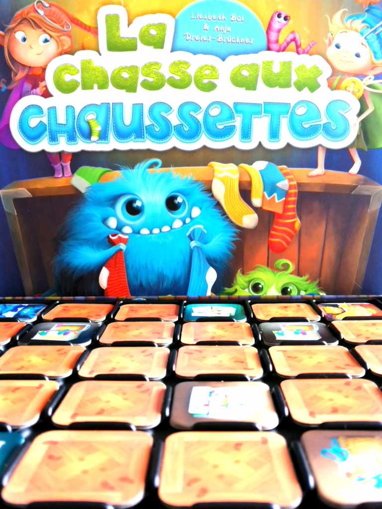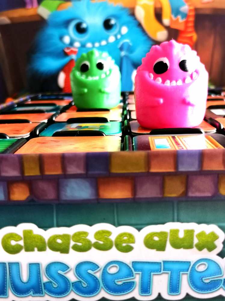 En me lançant dans ma première partie de LA CHASSE AUX CHAUSSETTES, j’avais peur de n’y trouver qu’un jeu de « mémoire » dans lequel il suffirait de retourner des tuiles et de se souvenir de celles-ci pour récupérer les chaussettes tant convoitées. Si cet aspect est indéniablement présent dans le jeu, LA CHASSE AUX CHAUSSETTES va beaucoup plus loin en associant cette mécanique assez ordinaire à des éléments bien plus subtils de blocages et des choix tactiques non négligeables. En effet, derrière des règles très accessibles, se cachent des options stratégiques relativement nombreuses pour un jeu « enfant » jouable dès 6 ans. Les premières parties sont, en ce sens, assez déstabilisantes car certaines règles ou options diffèrent entre les deux phases de « Déplacements ». Et une fois saisies les différences de fonctionnement, LA CHASSE AUX CHAUSSETTES délivre une finesse folle, qui pourrait bien dans un premier temps, échapper à nos chères têtes blondes. Si l’objectif est bien de récupérer trois paires de chaussettes identiques et donc de tenter de repérer et mémoriser les tuiles susceptibles d’aller nous faire fouiller dans le sac aux chaussettes, LA CHASSE AUX CHAUSSETTES est surtout une course impliquant de ne pas « tout » jouer sur la chance de découvrir la « bonne » tuile au bon moment pour tomber sur la « bonne » chaussette. Il y a un peu de hasard c’est certain, mais ce sont surtout les placements tactiques des monstres et des pions qui détermineront le vainqueur. On entre alors, sans véritablement s’en rendre compte, dans un jeu de blocages tendus dans lequel certains déplacements nécessaires ne peuvent être réalisés sous peine de se faire « voler » au tour prochain ou de laisser disponible une tuile adverse. Il va donc falloir peser le pour et le contre de chaque déplacement ou action. Le jeu excelle dans cet équilibre parfait entre « chance » et « profondeur tactique » tout en restant suffisamment léger dans les actions à entreprendre et toujours très ludique. Il faut dire que le thème est un modèle du genre. Cette « chasse aux chaussettes » est drôle et extrêmement bien rendue par un matériel de qualité, par l’ingéniosité des composants, par la découverte progressive des contenus additionnels des différentes pièces de la maison et par la « fouille » concrète des chaussettes dans le sac. Le jeu flirte avec l’abstrait tout en parlant profondément aux enfants. La progressivité des règles donne véritablement envie d’enchainer les parties, très dynamiques et relativement courtes. Si vous recherchez un jeu pour vos enfants, tactique s’en en avoir l’air, et fun tout en monopolisant une bonne partie de leurs cerveaux, LA CHASSE AUX CHAUSSETTES est ce qu’il vous faut.