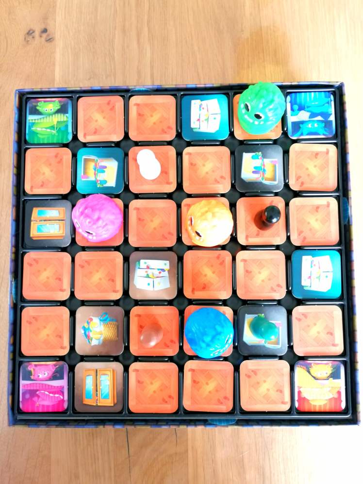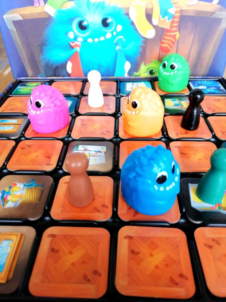 – « Déplacement des Monstres ». Le joueur actif lance le dé « couleur » et doit déplacer le monstre indiqué par la couleur du dé de 1 à 3 cases. Il soulève ensuite la figurine et regarde la face indiquée par le dé sous celle-ci. Si elle montre un œil fermé, le monstre s’endort et la phase prend fin. Si l’œil est ouvert, alors, le joueur actif peut consulter secrètement une tuile orthogonalement adjacente au monstre, prendre une chaussette d’un joueur dont le pion est adjacent au monstre et la positionner dans l’antre du monstre, ou rejouer avec le même monstre.