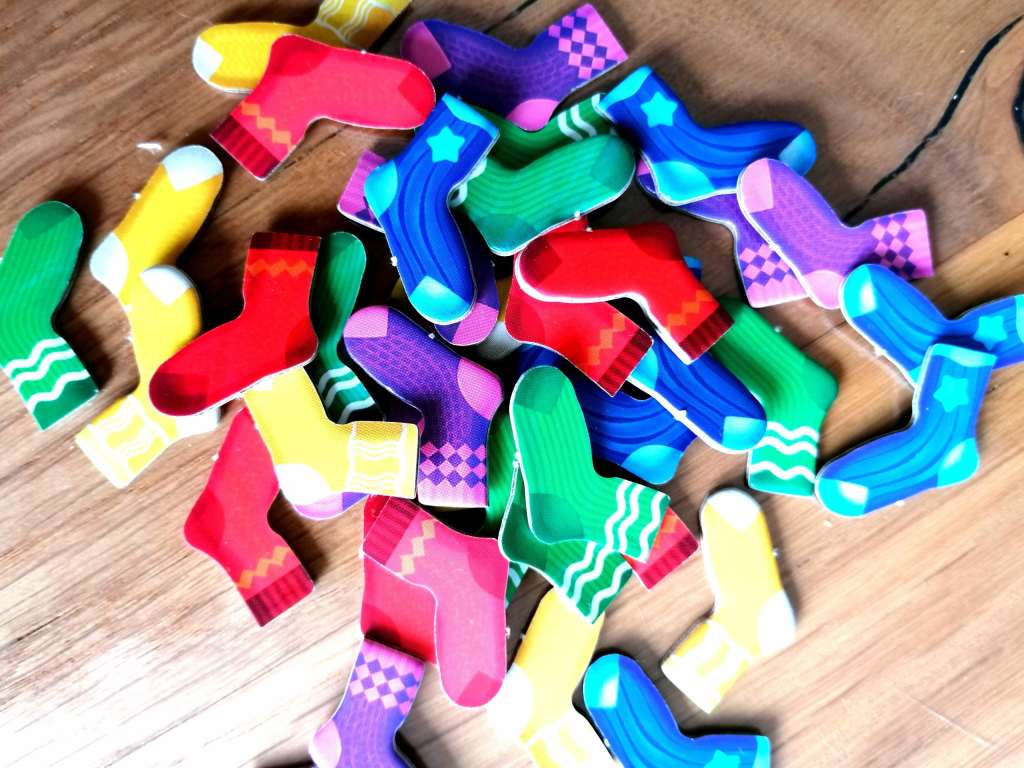 La partie prend fin immédiatement lorsqu’un joueur a récupéré 3 paires de chaussettes (une paire est constituée de deux chaussettes de la même couleur). Il gagne la partie et colle un autocollant sur le fond de la boîte pour chaque paire de chaussettes qu’il a réussi à constituer. Au bout d’un certain nombre d’autocollants placés, un contenu additionnel est à découvrir dans l’insert de chaque pièce de la maison, venant bouleverser les règles du jeu progressivement.