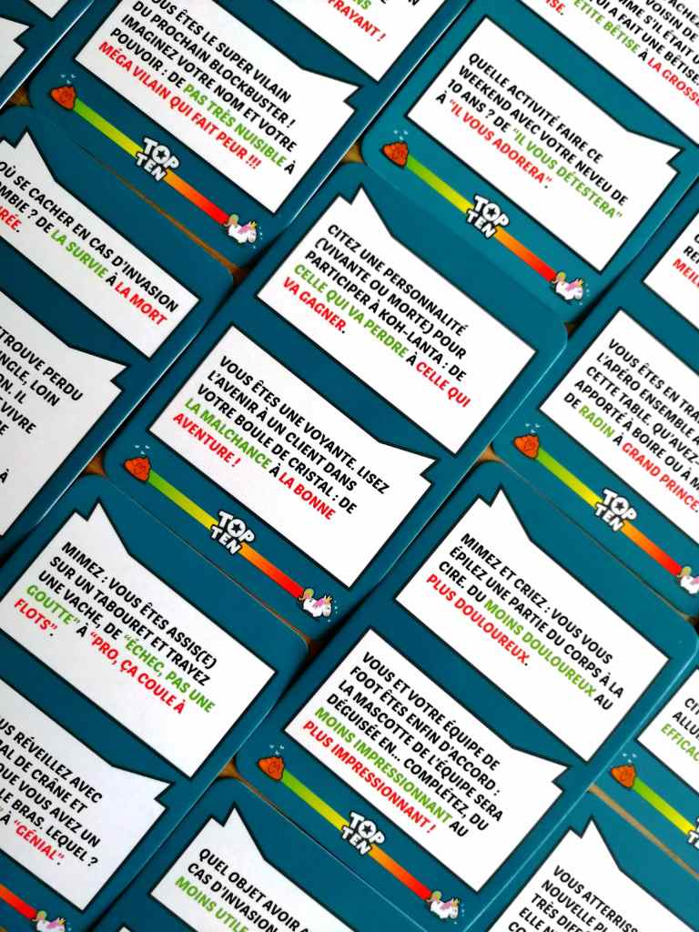 TOP TEN est un jeu coopératif d’ambiance, sans thème.