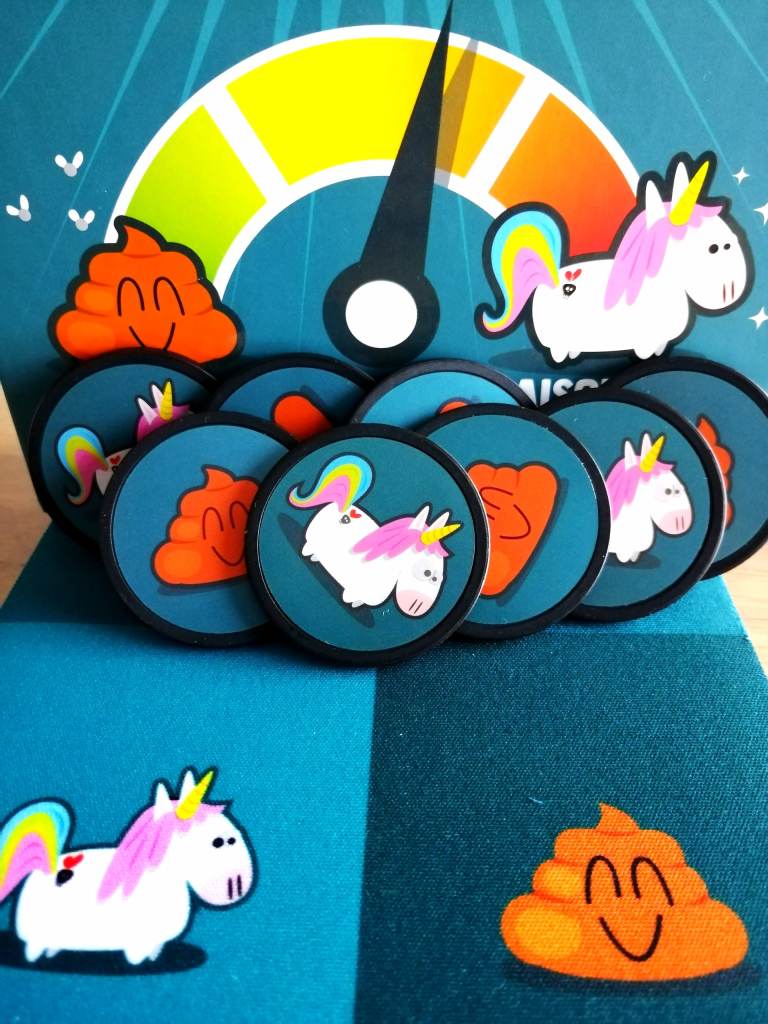 A tout moment, si tous les jetons sont dans la zone « caca », la partie est perdue. S’il reste des jetons « Licorne » à la fin de la 5ème manche, la partie est gagnée.