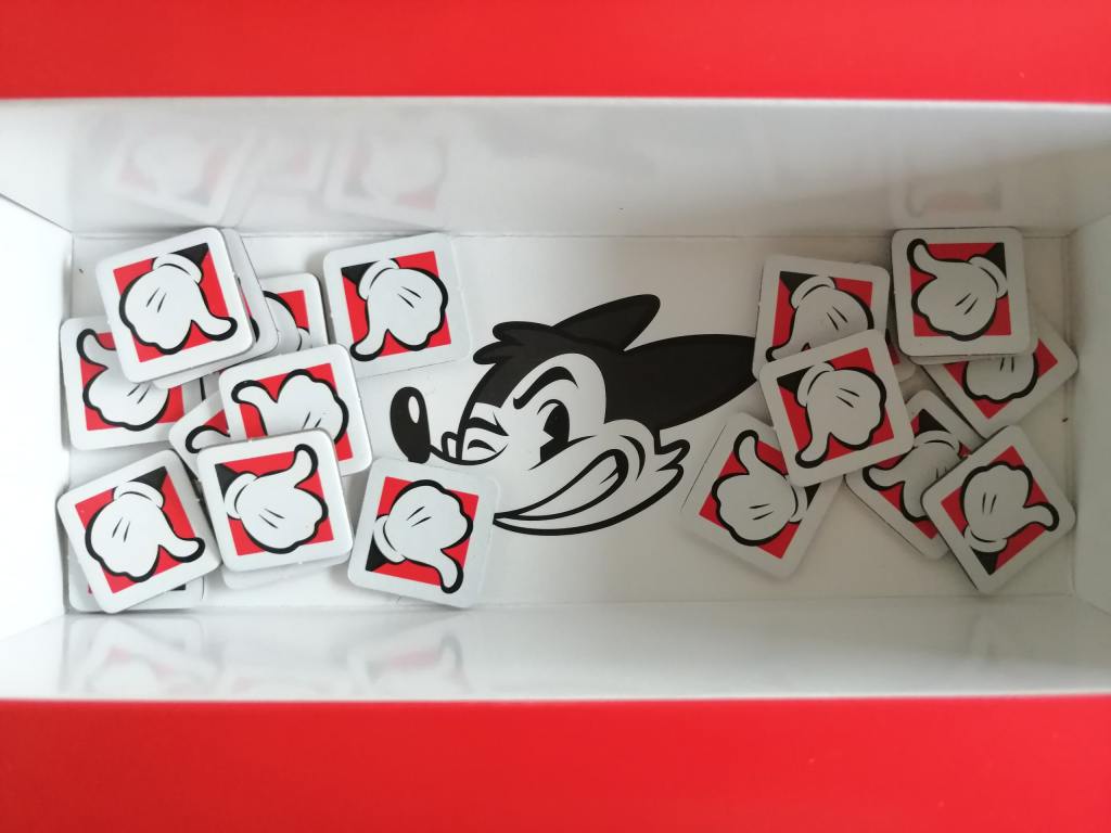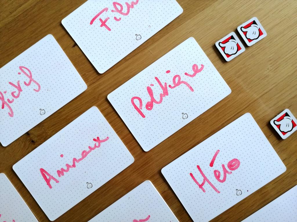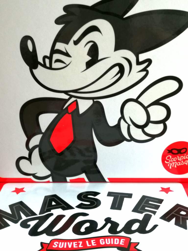 Je suis toujours très intéressée par les sorties ludiques du Scorpion Masqué, souvent décalées, originales et ne tombant jamais dans la facilité. Il était difficile de passer à côté de leur prochaine nouveauté annoncée, lors du dernier Festival International des Jeux de Cannes, tant l’identité visuelle de MASTER WORD est forte. Mais que se cache-il mécaniquement derrière ce personnage en noir et blanc, cravaté de rouge, nous rappelant fortement un symbole de notre enfance ? L’éditeur, avec cet « emblème » très marqué, brouille légèrement les « pistes » sur le contenu réel du jeu, qui pourtant va devoir les explorer ! On ne sait pas vraiment à quoi s’attendre. Et d’ailleurs, même après plusieurs partie, il est difficile de « caser » MASTER WORD dans un type de jeu défini. MASTER WORD est avant tout coopératif et reprend le principe du « Master Mind » avec beaucoup de panache en l’appliquant sur des mots. L’idée est toute simple et tout simplement « géniale ». On est à la fois en terrain connu et complètement déboussolé par les défis de difficulté croissantes qui nous sont proposés. Là encore, tout n’est pas très clair ! MASTER WORD, par son format, la bonne ambiance qu’il génère et le nombre de joueurs qu’il réunit a tout d’un jeu d’ambiance. Mais plus les parties s’enchainent, plus les défis sont corsés. Les joueurs doivent se creuser la tête pour avancer minutieusement vers la victoire. Les discussions sont nombreuses et doivent aboutir à une stratégie collective. La réponse se construit progressivement, pas à pas, demandant une grande finesse de raisonnement. En ce sens, MASTER WORD ne sera pas le plus « poilant » des « Party-Games » et demandera un effort cognitif relativement important. Mais il brille par sa subtilité et son intelligence. C’est dans les 90 secondes de réflexion et la tension que cette pression temporelle crée qu’il devient drôle et attachant, à l’image de son illustration principale, que l’on comprend mieux dorénavant. Le matériel a beau être assez sommaire, la magie opère et les parties s’enchainent avec une question omniprésente : Mais comment est ce possible que personne n’y ait jamais pensé avant ? MASTER WORD impressionne par son minimalisme et son efficacité et constitue un jeu d’ambiance « sérieux » très malin et redoutable.