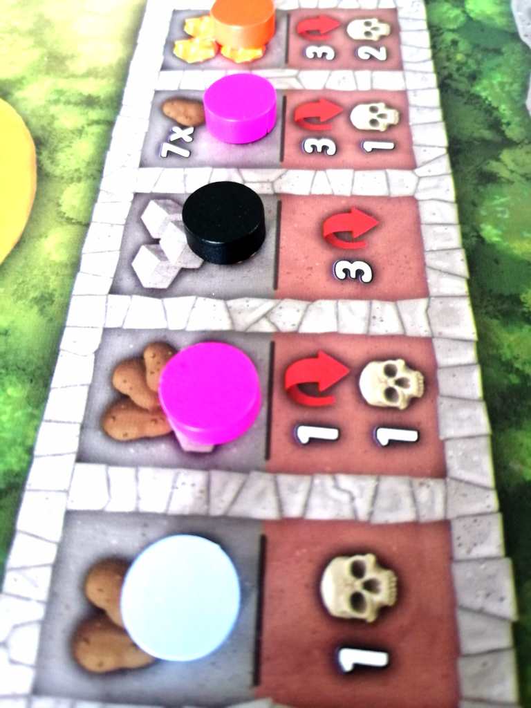 A la fin de son tour, un joueur peut recruter un nouvel ouvrier dans le village en payant son coût en pomme de terre ou maïs. A tout moment de son tour de jeu, un joueur peut défausser des cartes « Armée » pour récupérer les bénéfices présents.