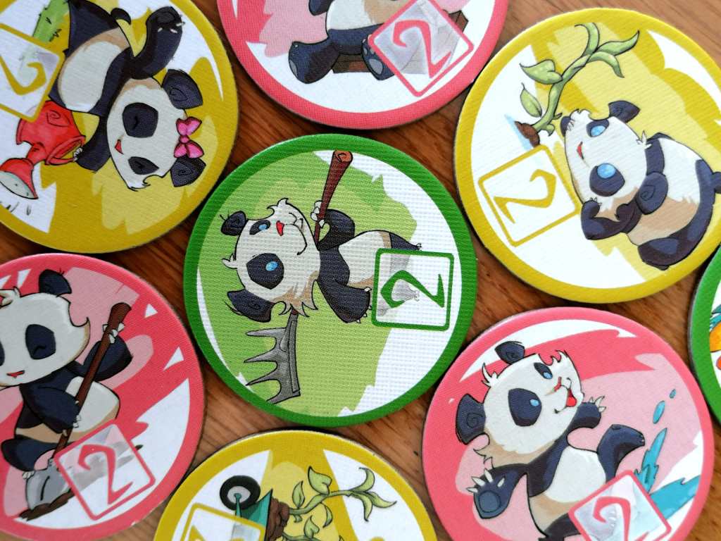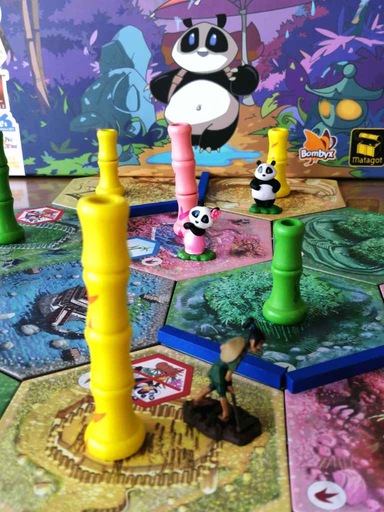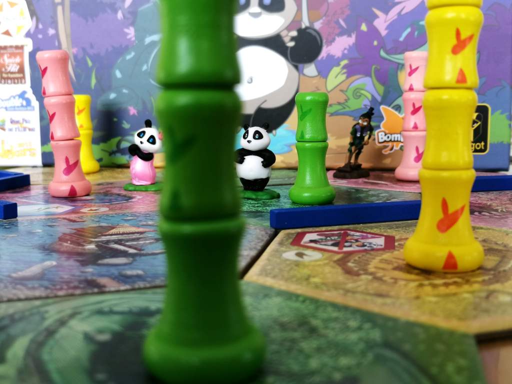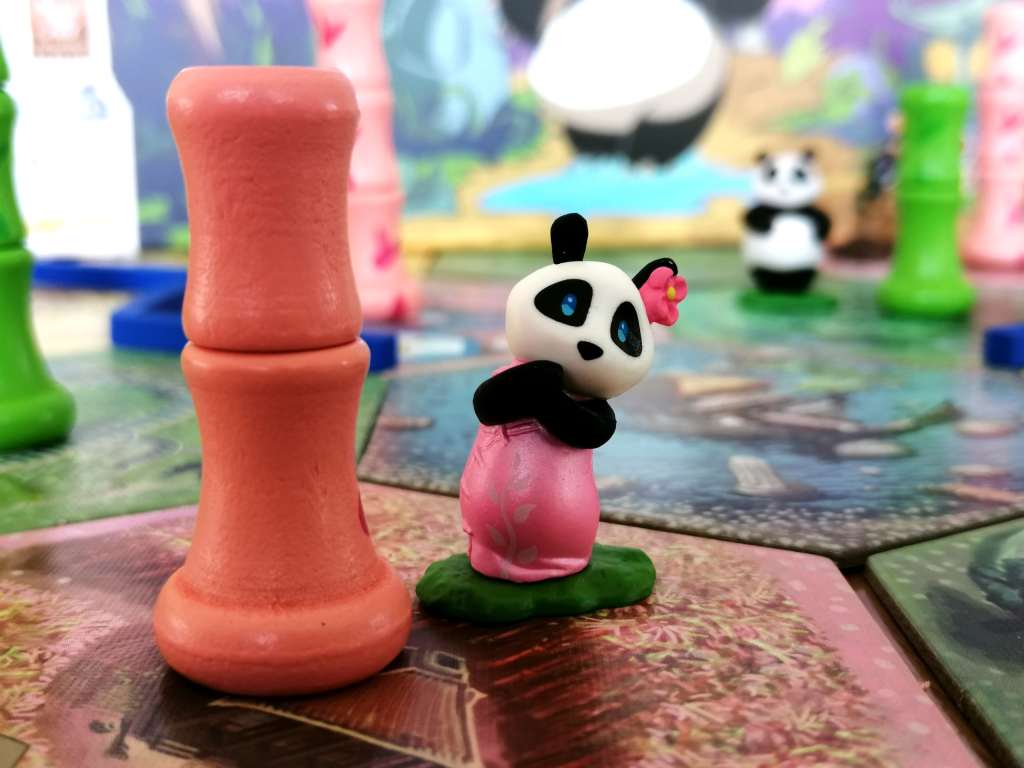 – Miss Panda. La figurine fait son entrée dans la bambouseraie lorsqu’un joueur met en jeu une parcelle avec son symbole. Dès qu’une nouvelle parcelle avec ce même symbole rentre en jeu, elle se déplace immédiatement dessus. L’action « déplacer le panda » permet désormais de choisir entre le déplacement du panda ou de miss panda, qui se déplace de la même façon que son homologue mâle. Lorsque Miss panda se déplace sur la même tuile que celle occupée par le panda, le joueur actif peut défausser une section de bambou de n’importe quelle couleur pour faire naitre un bébé panda de cette même couleur. Le joueur choisit alors un pion « bébé panda » disponible qui lui octroie un de ses trois bonus immédiatement : prendre une irrigation, prendre un aménagement ou changer l’un de ses objectifs.