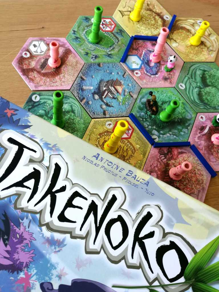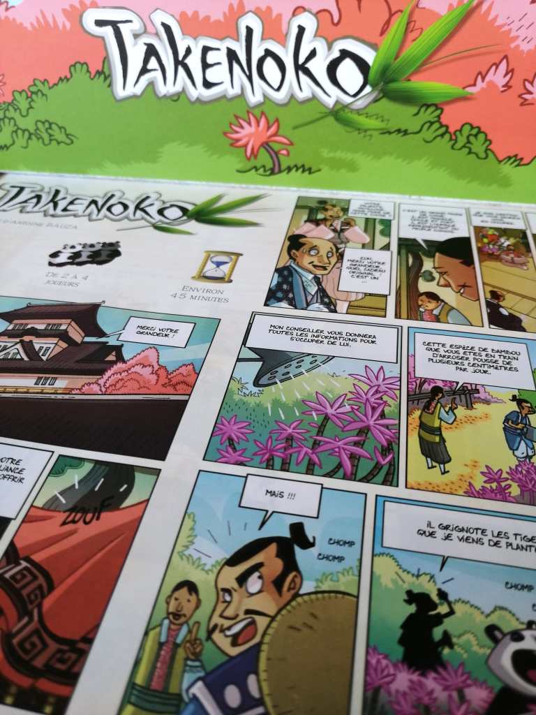 TAKENOKO est un incontournable dans le milieu ludique. Il représente un « jeu-passerelle » d’une efficacité redoutable pour convertir un public très large aux jeux de société modernes. J’avais eu l’occasion d’en faire une toute petite partie au début de mon intégration dans ce monde, mais c’est surtout mes nombreuses parties sur BOARD GAME ARENA, lors du premier confinement, qui m’ont vraiment donnée très envie de le redécouvrir physiquement. Et comment résister à sa thématique originale et son matériel splendide ? Il suffit de voir la réaction des gens autour de la beauté de sa boîte, mais également devant son plateau coloré, rempli de bambous en trois dimension pour saisir immédiatement l’envie absolument irrésistible de jouer à TAKENOKO. Mais le jeu n’est pas que beau… Et sa désignation comme As d’Or du Jeu de l’Année 2012 n’est pas un hasard. Ses règles très accessibles servent une mécanique simple et parfaitement huilée d’utilisation de points d’action en vue de réaliser des objectifs secrets. Sur le papier, rien de bien original me direz vous, sauf qu’ici cette mécanique est enveloppée dans du velours. Sans revenir sur direction artistique éblouissante du jeu, TAKENOKO respire sa thématique dans les moindres détails qu’il propose. La bambouseraie prend véritablement vie devant nos yeux et se transforme au cours de la partie par un jeu dans le jeu dans lequel chaque joueur tente de « faire et défaire » ses propres réalisations et celles des autres, sans vraiment que ce soit volontairement « méchant ». Les principales interactions, aussi rares soient-elles, proviennent essentiellement de cet aspect. En ce sens, TAKENOKO manipule quelque peu les joueurs autour de la table en proposant un concept mignon, acidulé et léger tout en suggérant inconsciemment de jolies entourloupes. Les joueurs tenteront de deviner vers quels objectifs tendent leurs adversaires pour pouvoir mieux les contrer dans un jeu plus tactique et taquin qu’on ne le pense à première vue. La forte présence du hasard peut rebuter à juste titre certains joueurs, mais il ne faut pas perdre de vu que TAKENOKO s’adresse principalement et avec panache à un public cible familial, sans aucune autre prétention. Il associe de façon équilibrée un côté ludique élégant et des propositions tactiques légères et intelligentes. Sa rejouabilité n’est plus à démontrer et les ajouts de son extension CHIBIS viennent contrebalancer les quelques déséquilibres qu’on pouvait lui reprocher en augmentant les possibilités d’action des joueurs, et en intégrant de nouveaux éléments devenus vite indispensables. En moins d’une heure, TAKENOKO fait l’unanimité autour de la table, même si les tours de jeu peuvent paraitre légèrement long tant le plateau évolue tour après tour. Les joueurs doivent en effet s’adapter souvent à la dernière minute et laisser tomber ce qu’ils avaient prévu. Très peu stratégique, TAKENOKO joue la carte de l’opportunisme à fond pour se révéler encore plus « passe-partout ». Il plaira aux enfants comme aux plus grands, qui essaieront d’apprivoiser la chance et de tirer partie de chaque situation favorable, de manière un peu solitaire il est vrai. TAKENOKO, dans la même veine que « LES AVENTURIERS DES RAILS, CATANE, ou CARCASSONNE, propose un équilibre parfait entre réflexion et distraction. Sa singularité provient de sa thématique et de son esthétique qui le rendent incontestablement moderne, séduisant et très touchant.