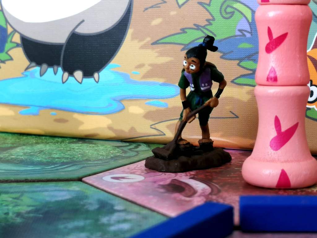 3 – Déplacer le jardinier en ligne droite . Le jardinier fait pousser le bambou de la parcelle d’arrivée ainsi que de toutes les parcelles de mêmes couleurs adjacentes, à conditions qu’elles soient irriguées.