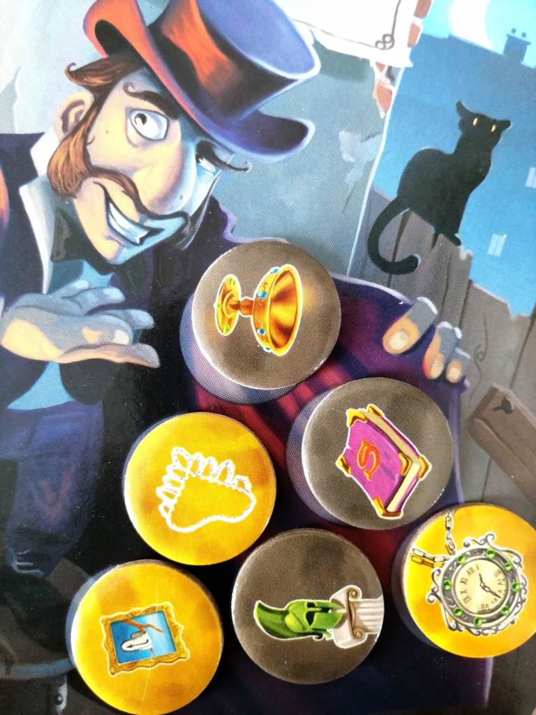 ° Ils défaussent au centre de la table les butins requis par un marché noir et peuvent récupérer soit une carte disponible de ce marché soit un jeton « objet d’art » disposé sur celui-ci.