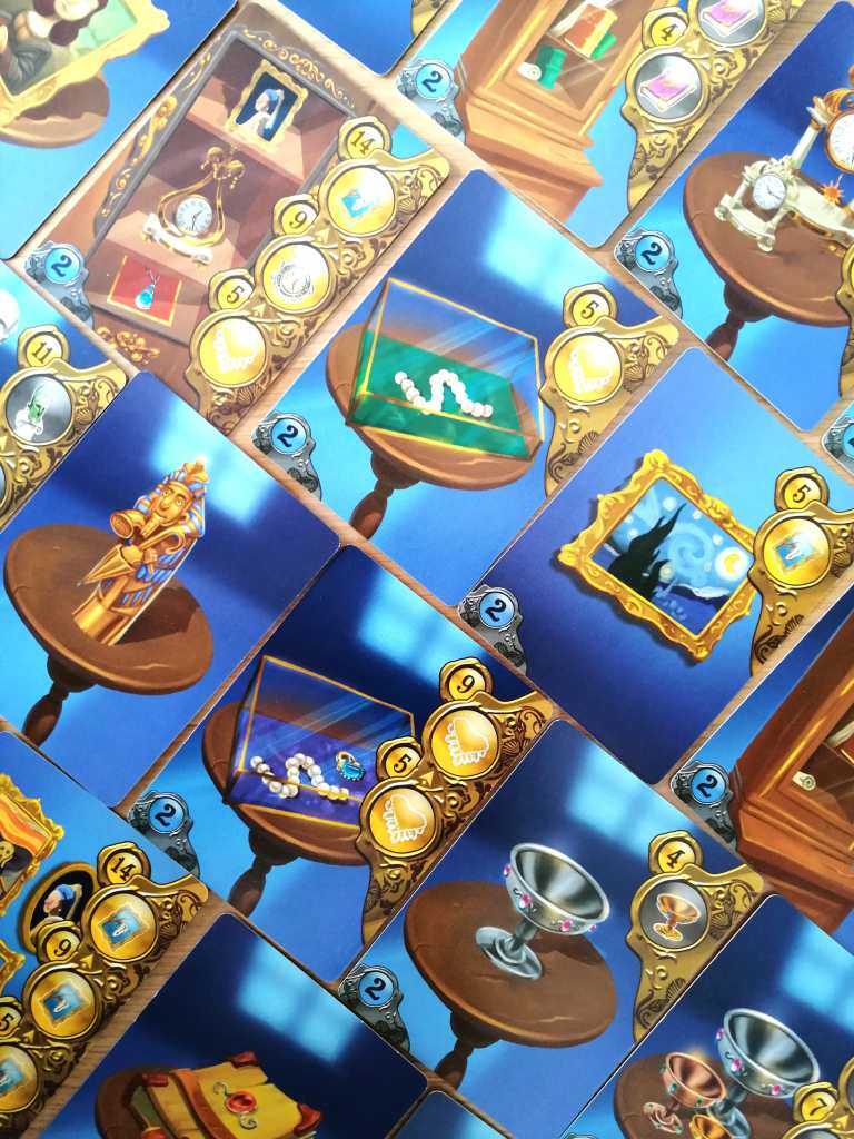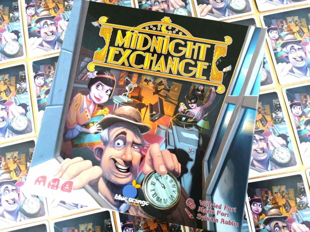 On a plus l’habitude d’associer Marie et Wilfried Fort à la création de jeux pour enfants. Alors, quand ce duo de talent nous livre un jeu aux allures plus familiales, nous cédons à la tentation de s’y essayer avec un immense plaisir. MIDNIGHT EXCHANGE repose d’ailleurs sur une thématique et une mécanique pas si éloignées que ça de la naïveté et de la légèreté que peuvent contenir les jeux conçus pour le jeune public. Les règles sont extrêmement accessibles et servent une expérience plutôt immersive et véritablement « fun ». Incarner des cambrioleurs est toujours plaisant, il faut bien l’avouer, d’autant plus lorsqu’il s’agit de voler un butin susceptible d’être échanger au marché noir contre des objets de plus grande valeur. Si le jeu propose une mécanique principale de collection associée à de la rapidité et de l’observation, on retrouve dans les objectifs à atteindre et la direction artistique, toute l’espièglerie dont les auteurs se font régulièrement et brillamment les témoins. Chaque manche de MIDNIGHT EXCHANGE se scinde en deux moments distincts. Une course en simultanée, brève et intense se positionne en amont d’un moment de collection plus calme et réflexif. Ces deux aspects du jeu sont intimement liés l’un à l’autre mais ne procurent pas du tout les mêmes sensations. Ainsi, le rythme est en courant alternatif entre une phase nerveuse, amusante et très rapide et une phase de choix plus posés et tactiques. Pourtant, l’aspect stratégique est très présent dans la première séquence, en association avec une part de hasard non négligeable. Il n’est pas question de voler tout et n’importe quoi mais plutôt les objets nécessaires à fournir au marché noir dans l’espoir d’obtenir des cartes « prestige » et objets d’art compatibles avec les cartes « prestige » déjà obtenues et à compléter. Le système de recherche en simultanée avec l’obtention de clés donnant droit à d’autres lieux de fouille est une belle trouvaille, tout comme la pression temporelle montant progressivement d’un cran à chaque tuile « fuite » récupérée par un adversaire. Et comme les numéros de ces tuiles induisent l’ordre pour se présenter aux différents marchés noirs, il faut trouver le juste équilibre entre la quantité et la qualité d’objets à récupérer et le temps mis pour obtenir satisfaction. A trop en vouloir, on risque bien de tout perdre ! Il n’est pas rare d’être parvenu à voler des butins essentiels en rapport aux demandes des marchés noirs afin de récupérer des cartes ou pièces utiles à nos collections et de voir ces mêmes pièces partir dans les mains de nos adversaires se servant en premières positions. La phase de fouille articule donc habilement un stop ou encore mêlé à de la chance saupoudré de choix tactiques à effectuer dans l’urgence. La phase d’échanges vient concrétiser les résultats des fouilles de manière plus paisible et évidente. Il s’agit à la fois de prendre le plus intéressant pour nos collections en cours tout en privant les adversaires de ce qui pourrait leur être avantageux. C’est simple, malin et efficace et permet un moment de repos après des phases de cambriolages à cent à l’heure. MIDNIGHT EXCHANGE se veut rassembleur et sera encore meilleur à partir de trois joueurs. Le thème est cool, le matériel est agréable et la mécanique est très plaisante, même si elle ne présente pas une grande originalité. Un jeu efficace et convainquant autant pour les enfants que les parents.
