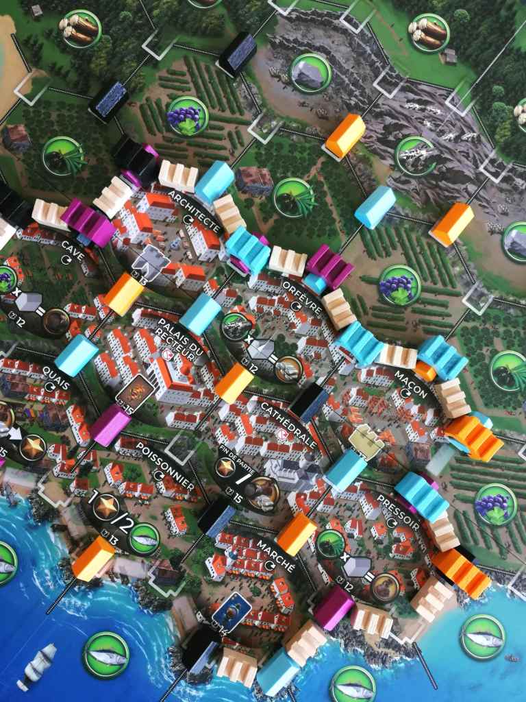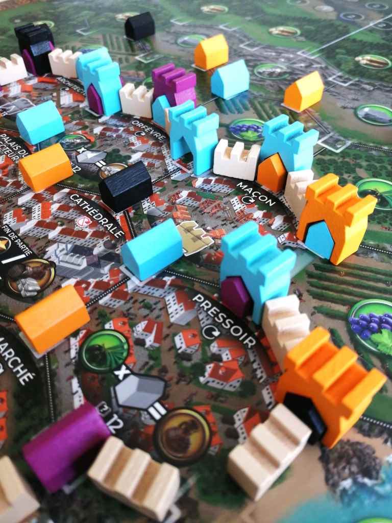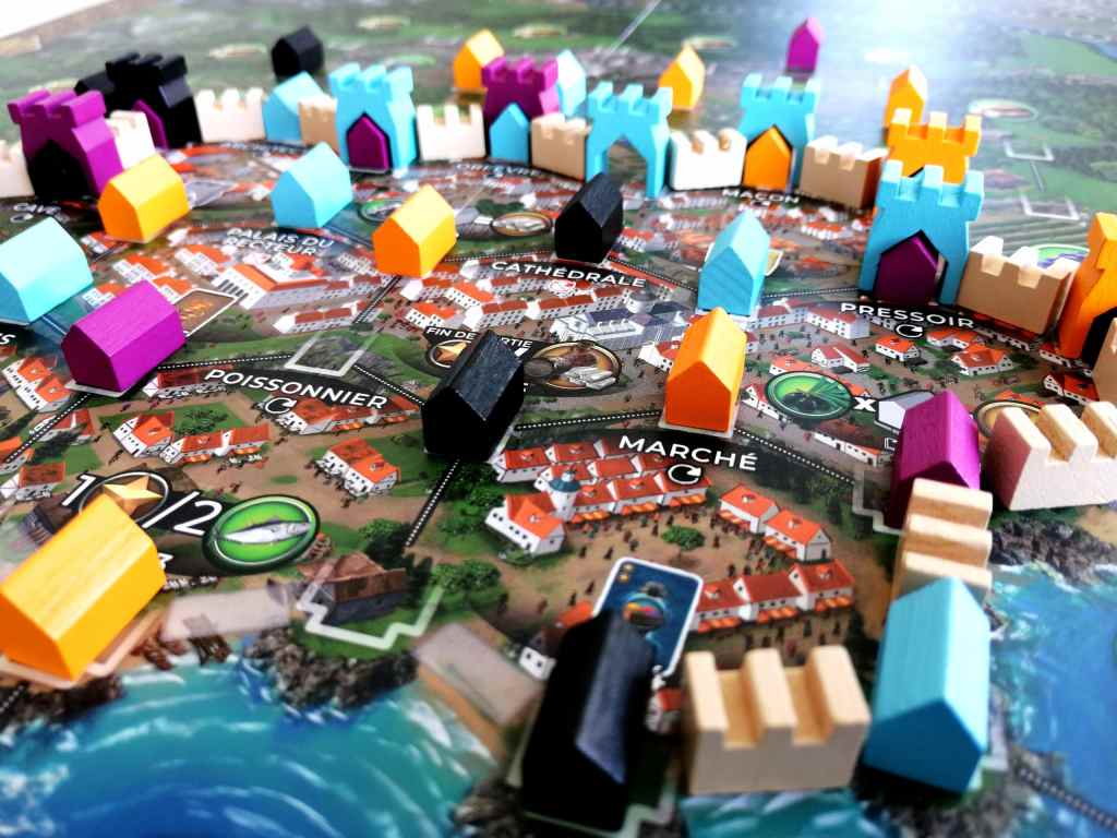 – Chaque maison placée autour de la Cathédrale fait gagner un nombre de points de victoire égal à la somme des valeurs d’un lot des trois marchandises.