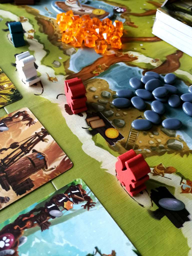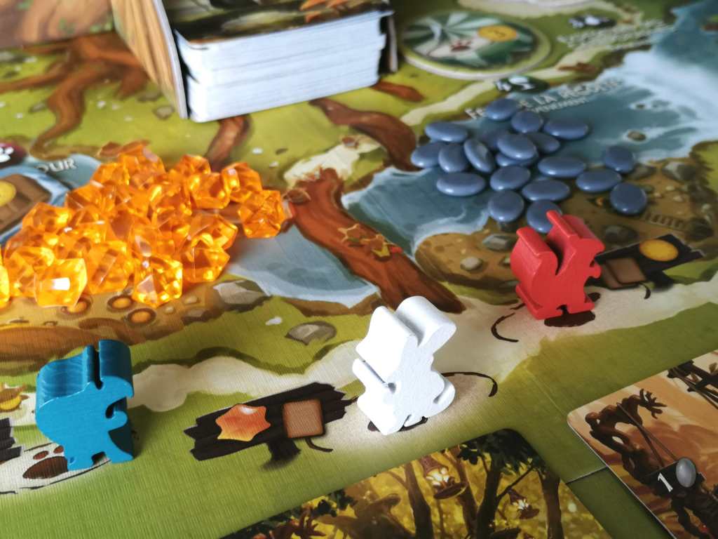 – Placer un ouvrier. Il s’agit de positionner un ouvrier sur l’une des cases d’actions de base du plateau, sur les lieux forestiers, sur les cartes et tuiles évènements ainsi que sur les cartes destinations des villes des joueurs. Ces lieux permettent de récupérer des ressources, des cartes ou des points de victoire, de réaliser des objectifs communs à tous les joueurs ou encore d’utiliser une capacité immédiate.