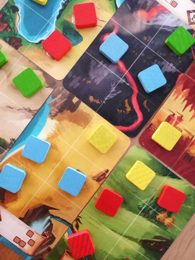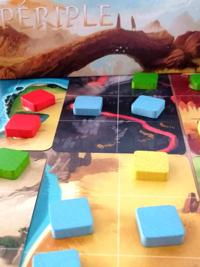 Contrairement aux deux titres précédemment cités, plutôt immersifs, PÉRIPLE est un jeu abstrait aux sensations plutôt frisquettes. La chaleur fait de temps en temps une apparition courte et remarquée, lors du retournement des cartes Personnage et de la découverte de l’aventurier qui fera dorénavant parti de notre équipe. Pourtant, les fortes interactions devraient réchauffer l’atmosphère puisque la mécanique repose sur des placements et blocages dans un objectif de majorité.