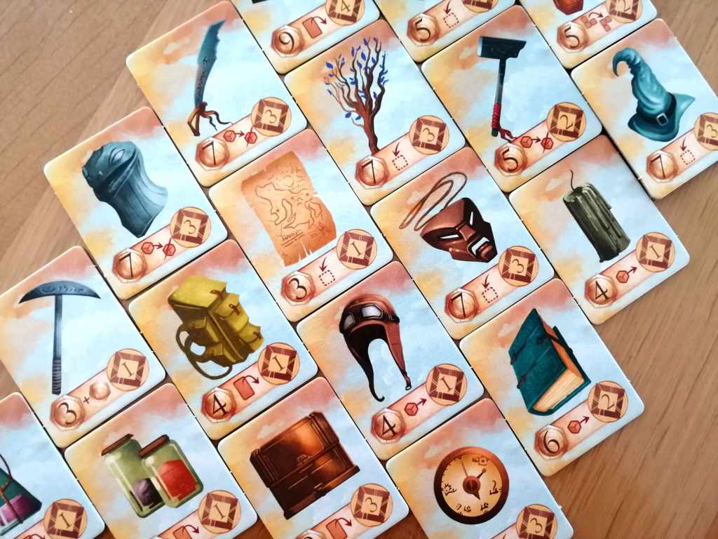 – Le joueur peut acheter un artefact lui octroyant une capacité à utiliser avec une carte Personnage quand il le souhaite au cours de la partie. Il sera alors retourné, tout comme les cartes personnages, et redeviendra utilisable lorsque les cartes seront retournées face visible.