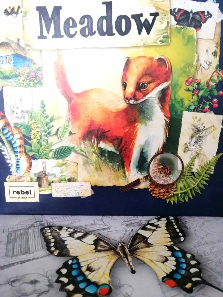MEADOW, c’est en premier lieu cette couverture, loin de faire l’unanimité. Clairement d’un autre temps, elle apparait malheureusement peu vendeuse. Pourtant, il serait dommage de s’arrêter à ces préjugés esthétiques tant le jeu nous transporte dans une promenade ludique à la fois agréable et semée d’embûches.