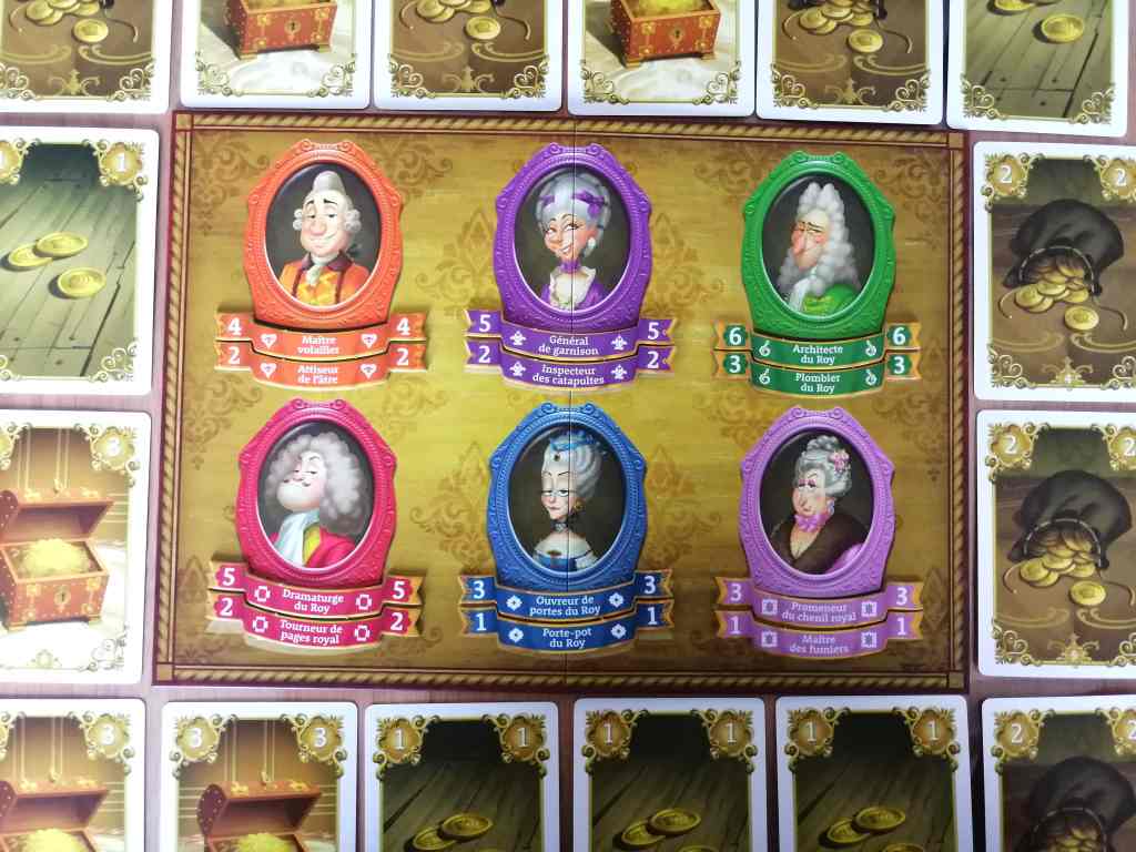 Le joueur actif répète cette opération jusqu’à ce que les trois zones soient complètes. Ensuite, c’est au joueur suivant de la réaliser jusqu’à épuisement du paquet de cartes. Attention, chaque fois qu’un joueur obtient une carte Roi, il la révèle immédiatement et applique son effet. Il s’agit d’influer sur la valeur des jetons Fonction attribués aux différents ministères.