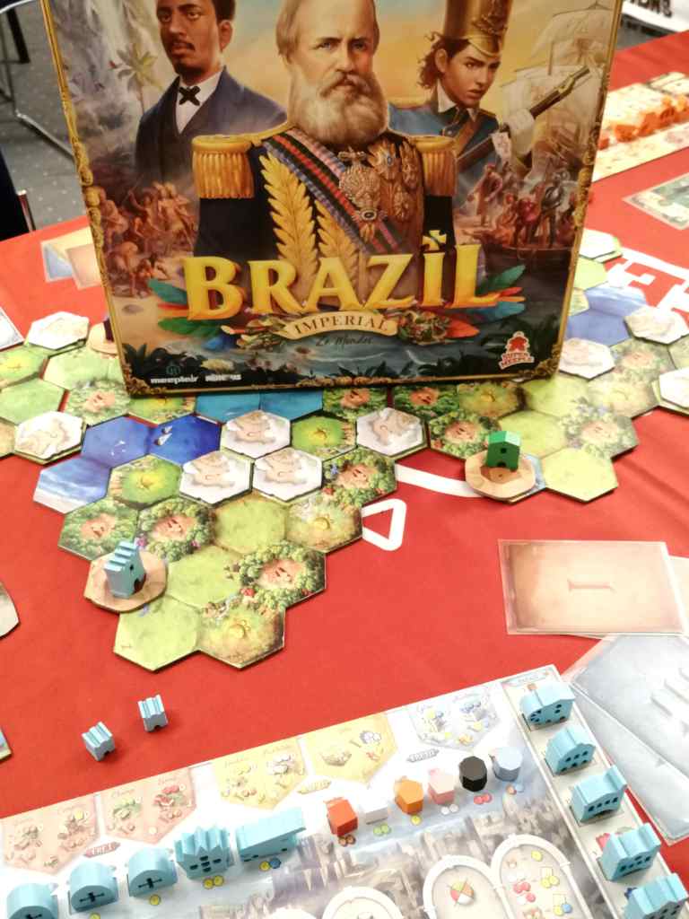 BRAZIL propose un 4X relativement accessible et bien moins long que la plupart des autres jeux de ce style. Le matériel est impressionnant et la mécanique s’inspire légèrement de Scythe. Les tours de jeu apparaissent fluides avec des choix tactiques intéressants. Rien de bien innovant sur le papier… A voir si les sensations me contredisent.